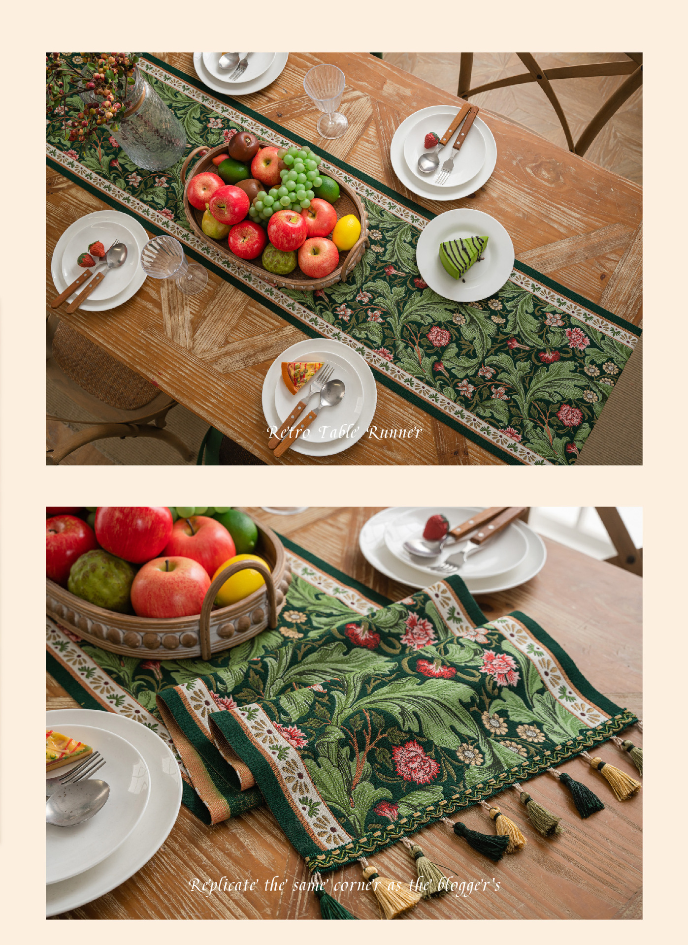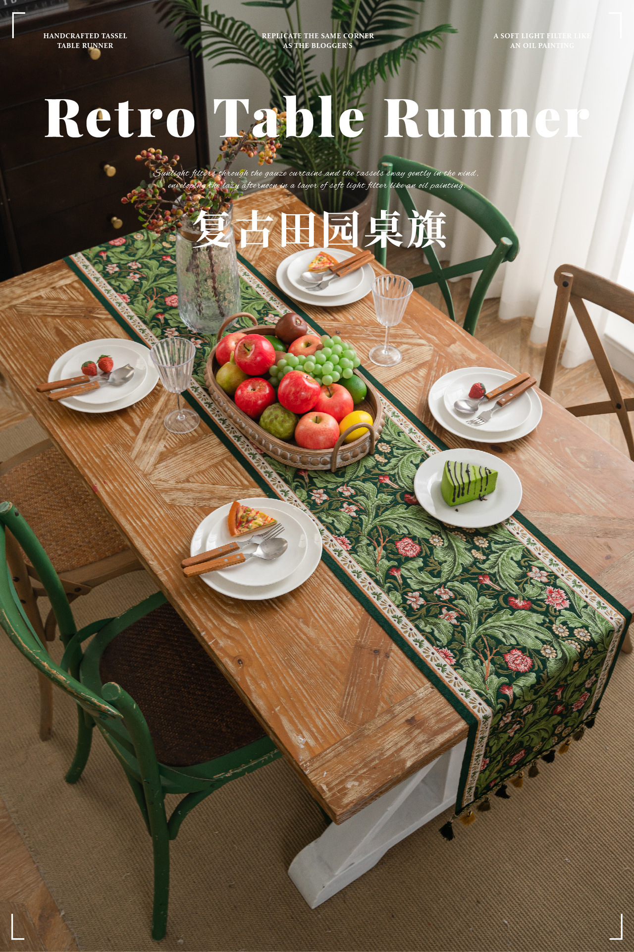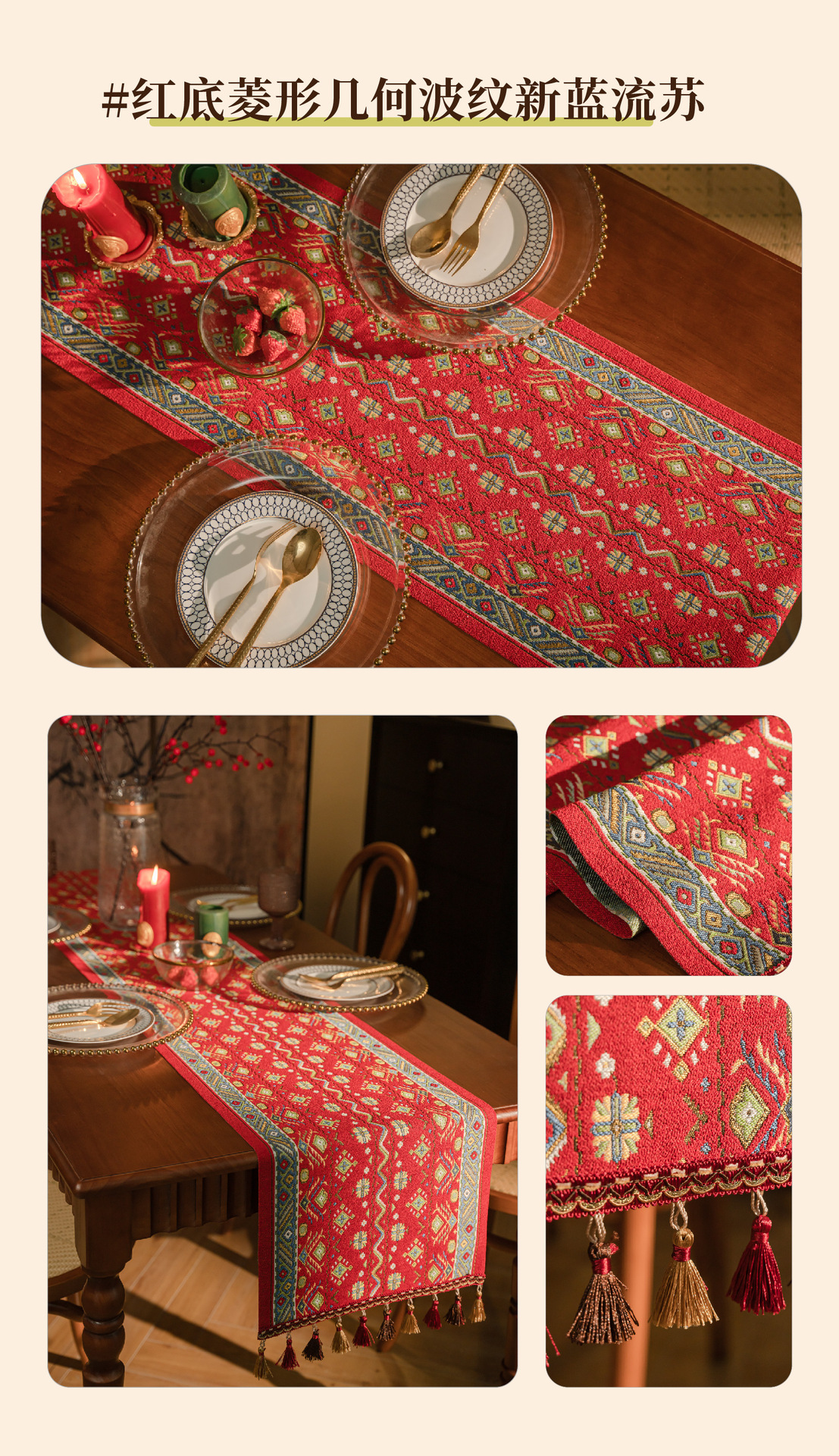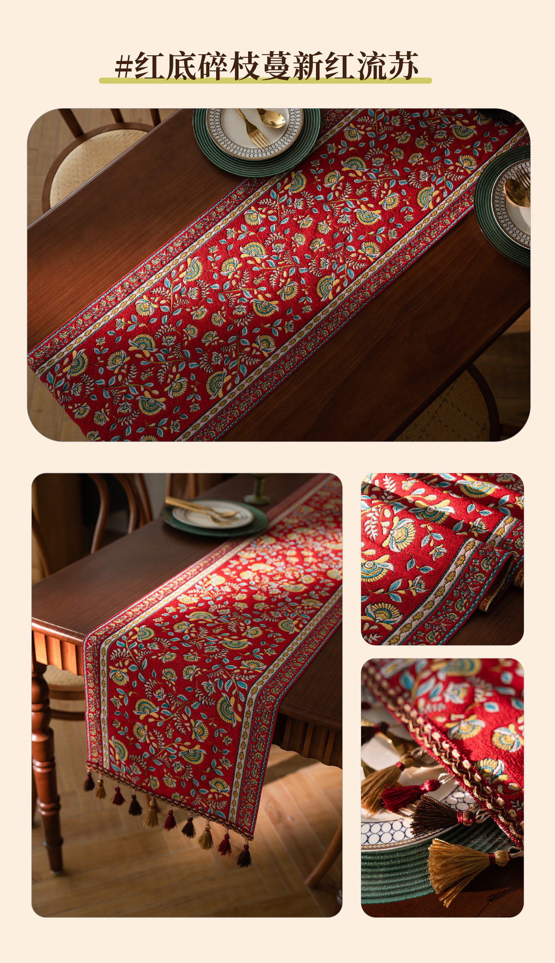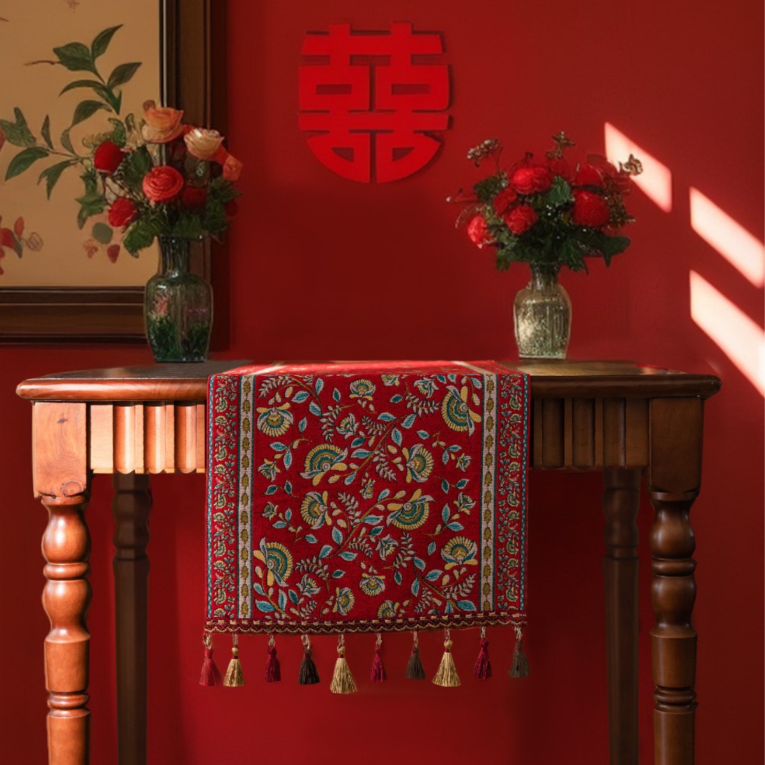 ジャカードレッドボトムブロークンブランチニューレッドタッセルテーブルランナー