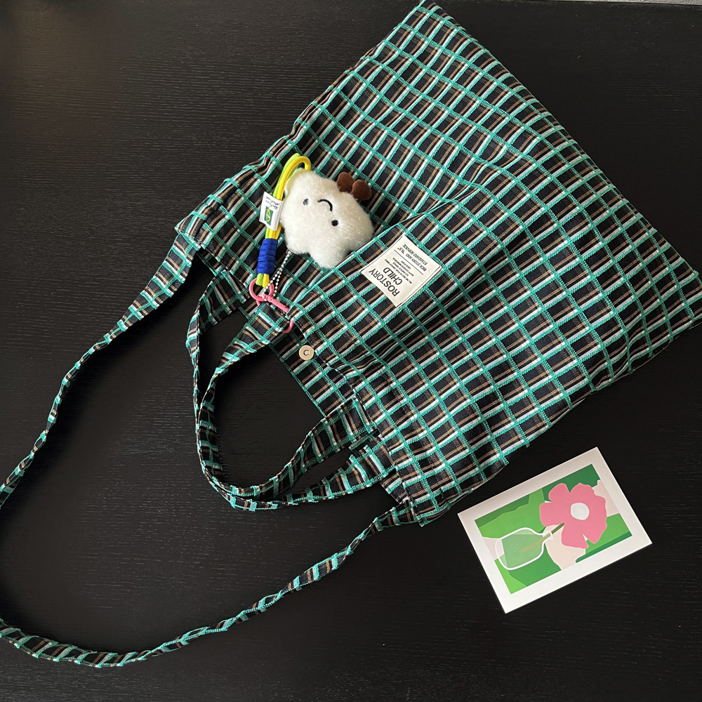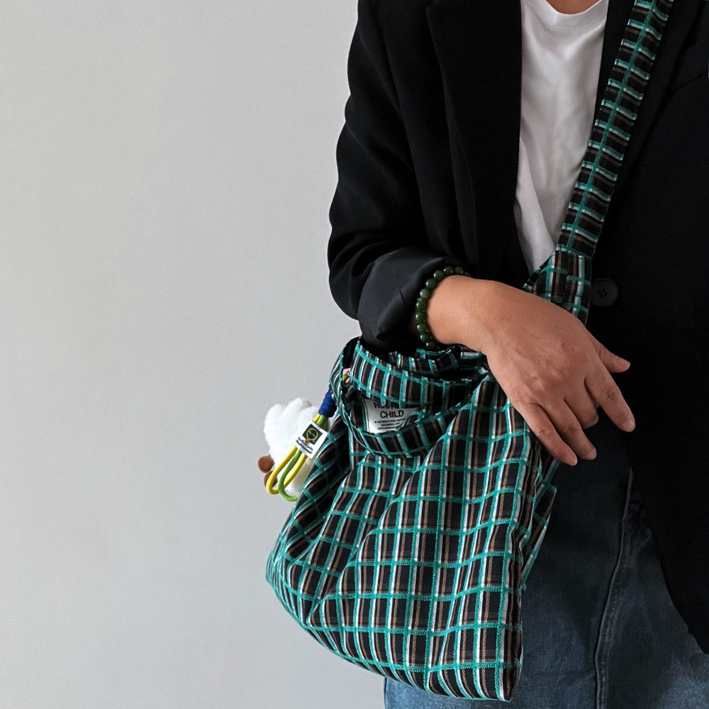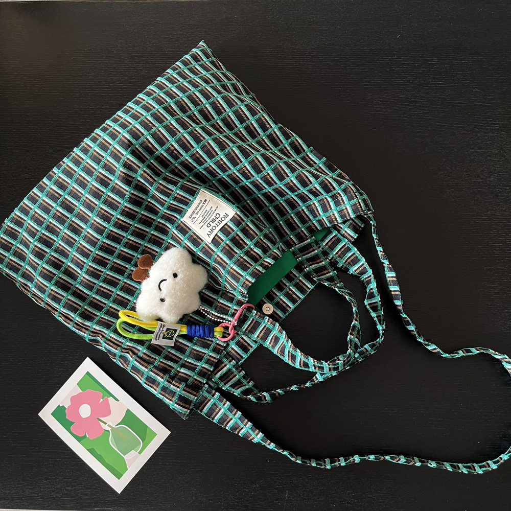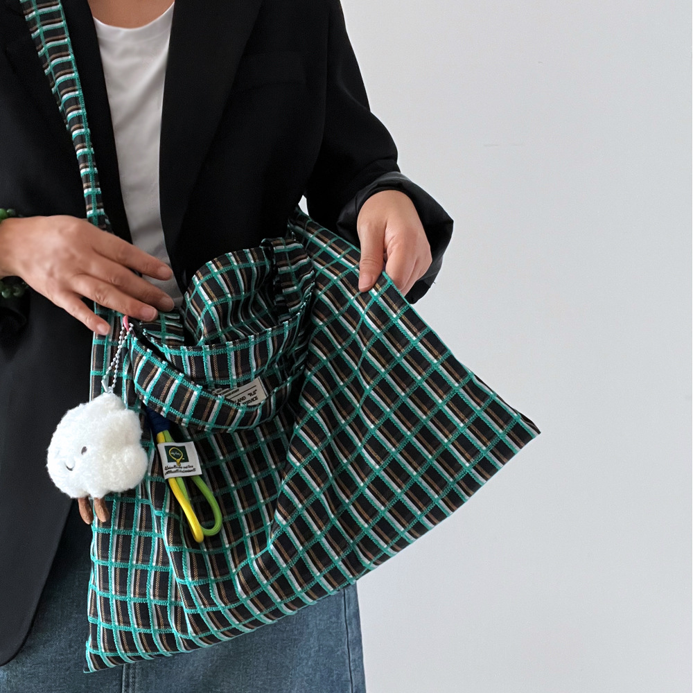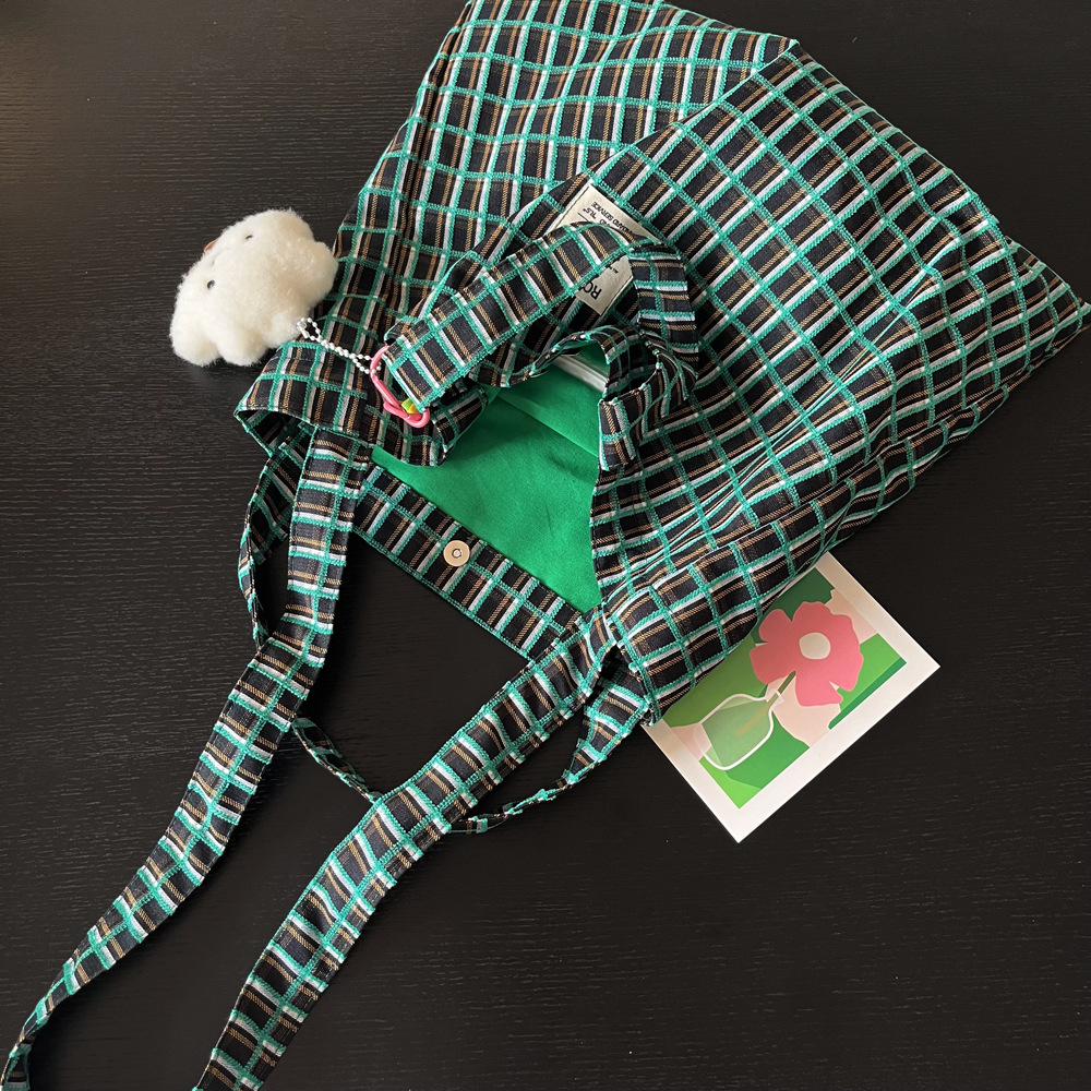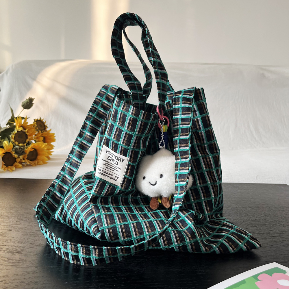 春のジャカードの緑の格子の衝突色のショルダーバッグの大容量の斜めなショルダーバッグのハンドバッグの通勤の小さい大衆の設計のキャンバス