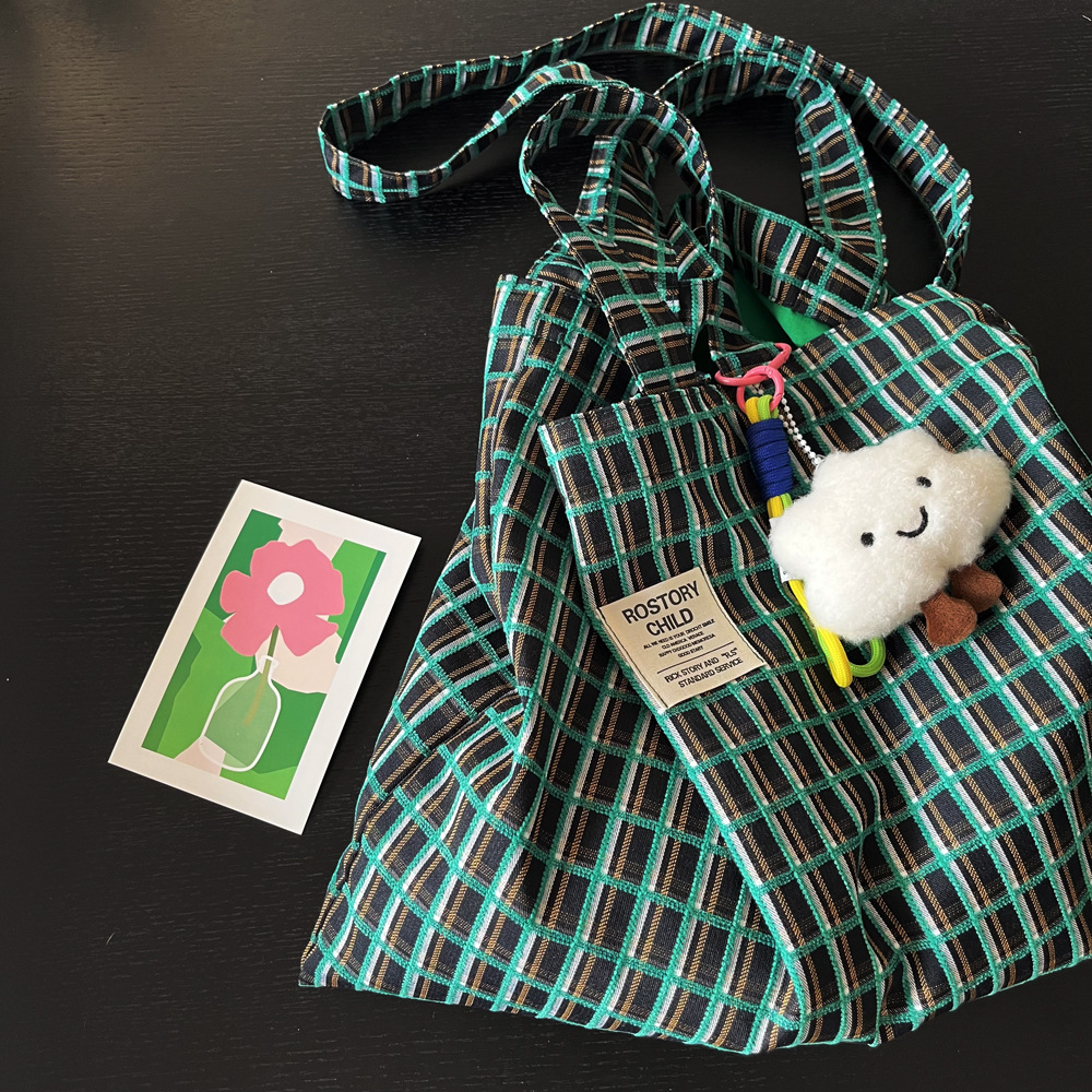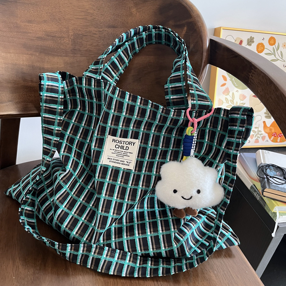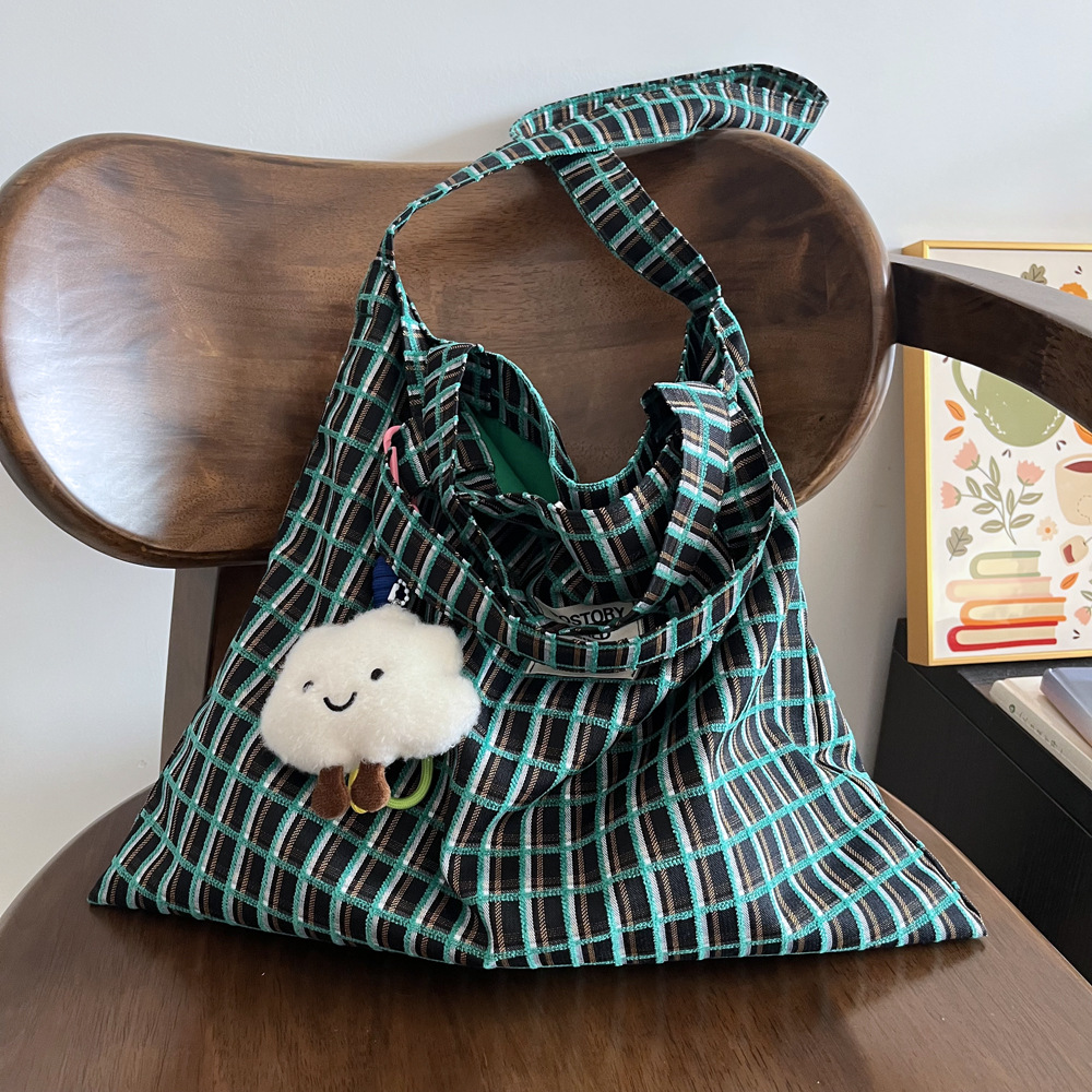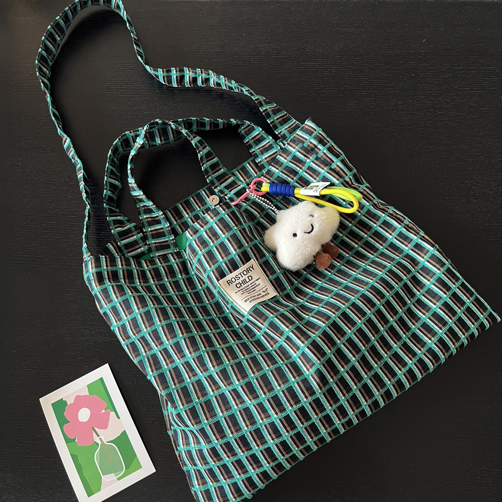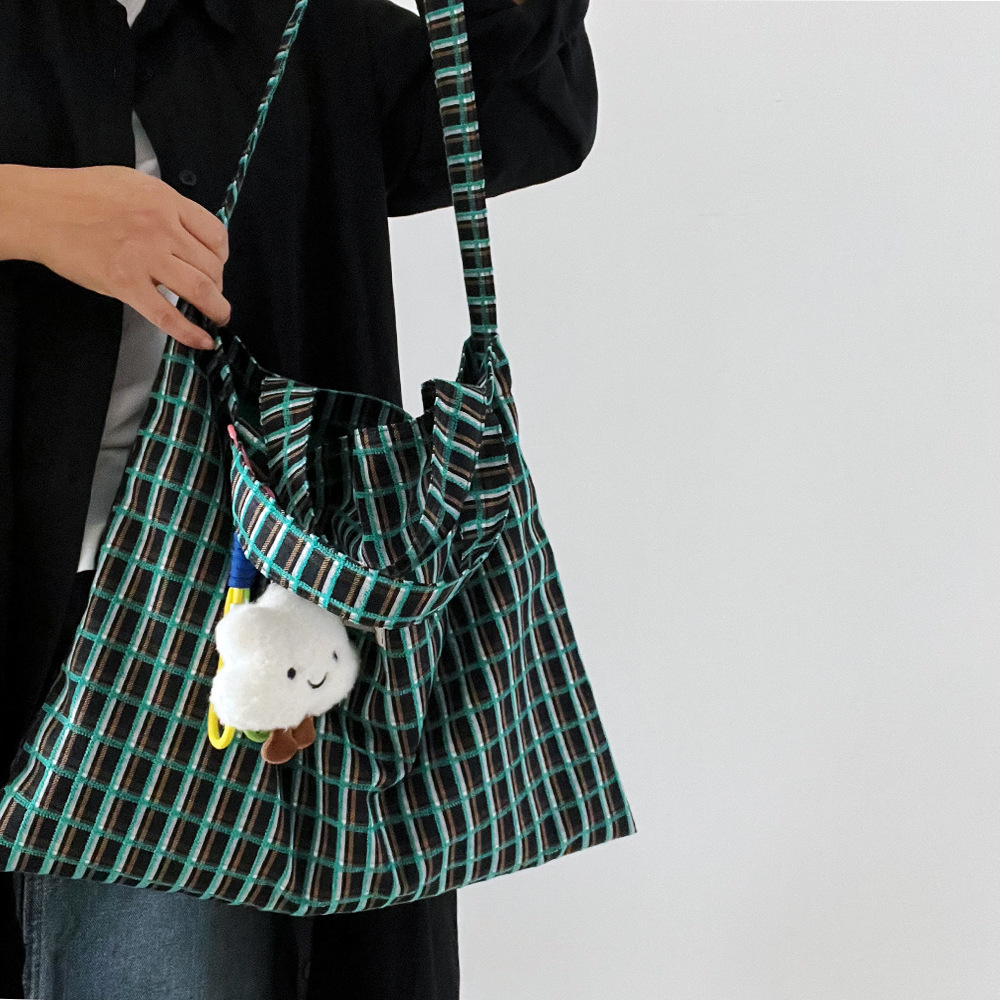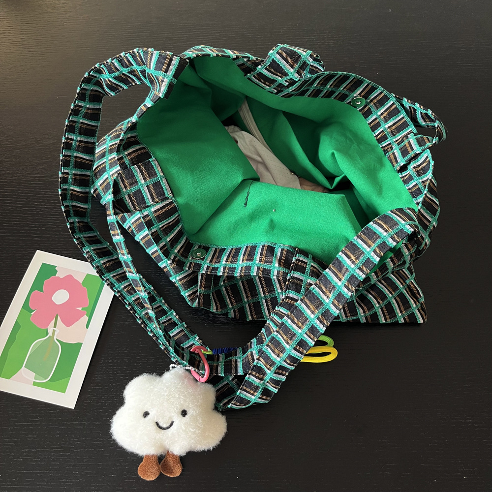 春のジャカードの緑の格子の衝突色のショルダーバッグの大容量の斜めなショルダーバッグのハンドバッグの通勤の小さい大衆の設計のキャンバス