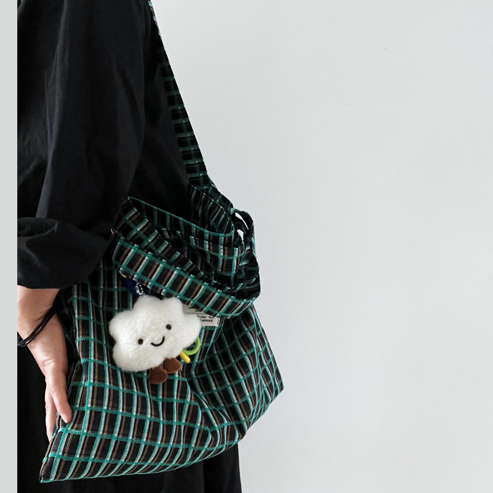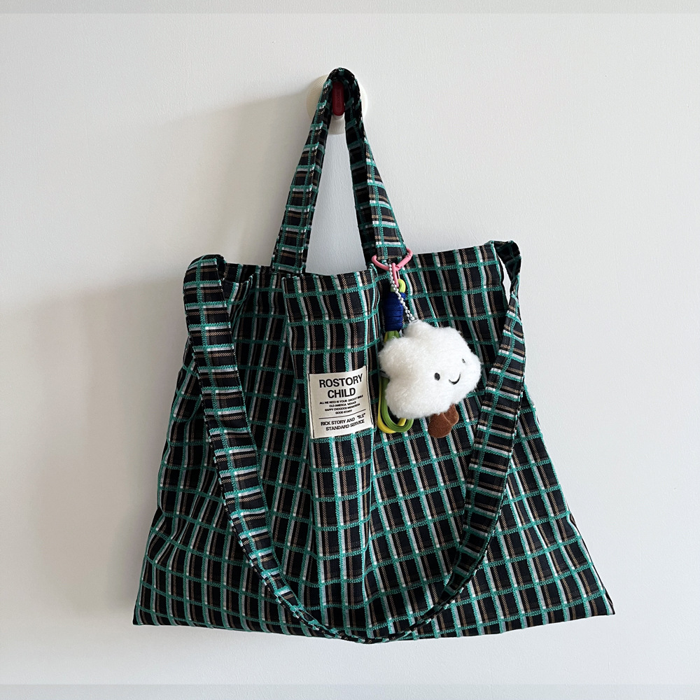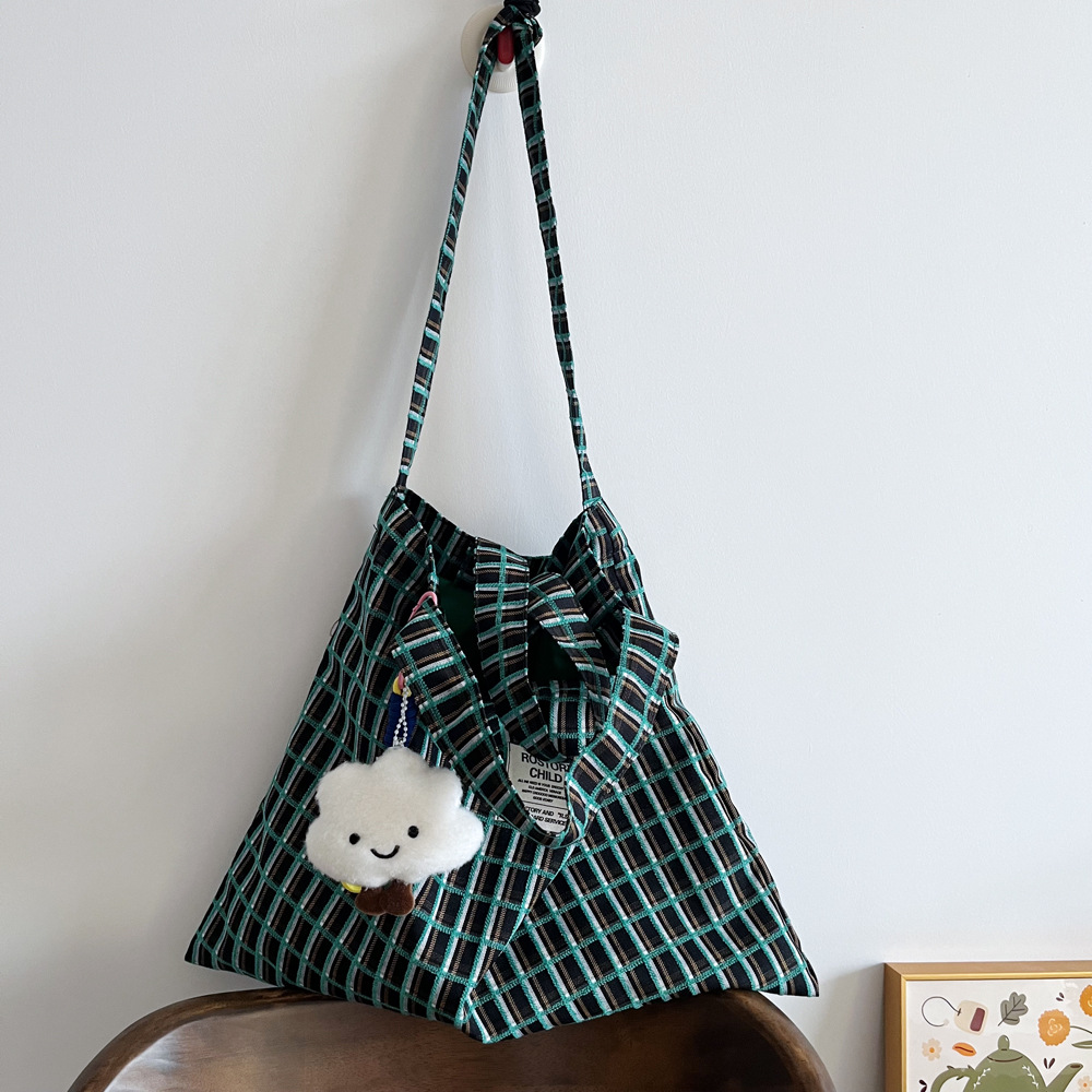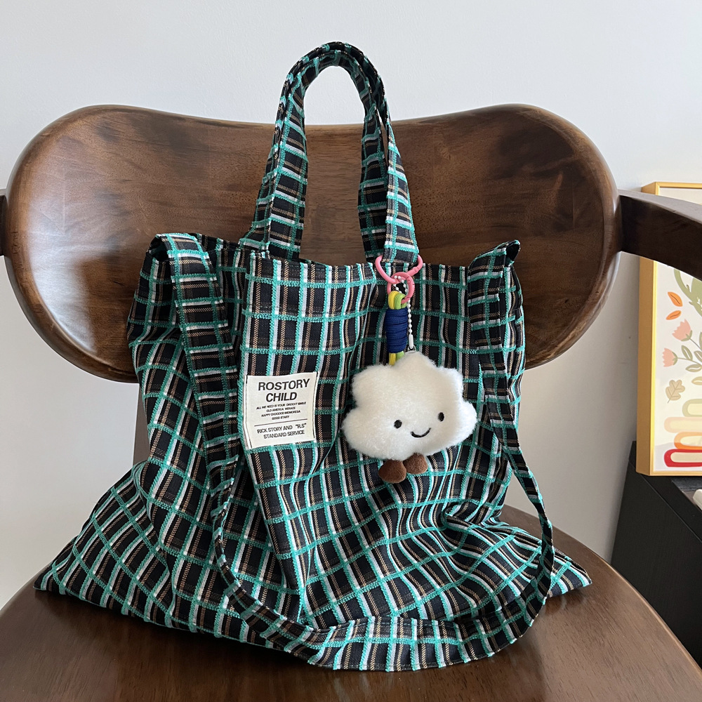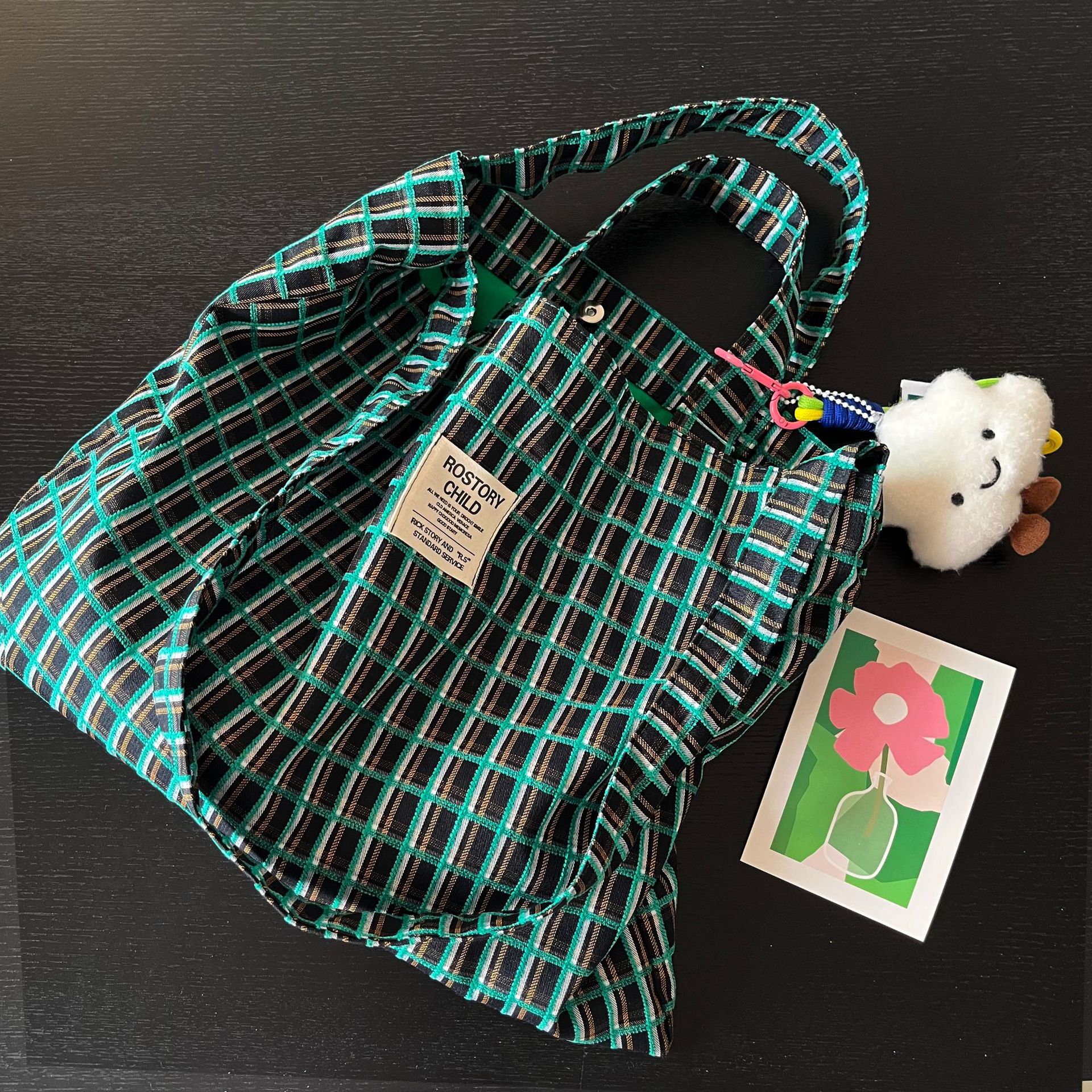 春のジャカードの緑の格子の衝突色のショルダーバッグの大容量の斜めなショルダーバッグのハンドバッグの通勤の小さい大衆の設計のキャンバス