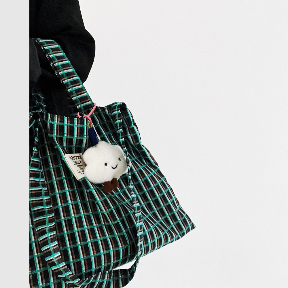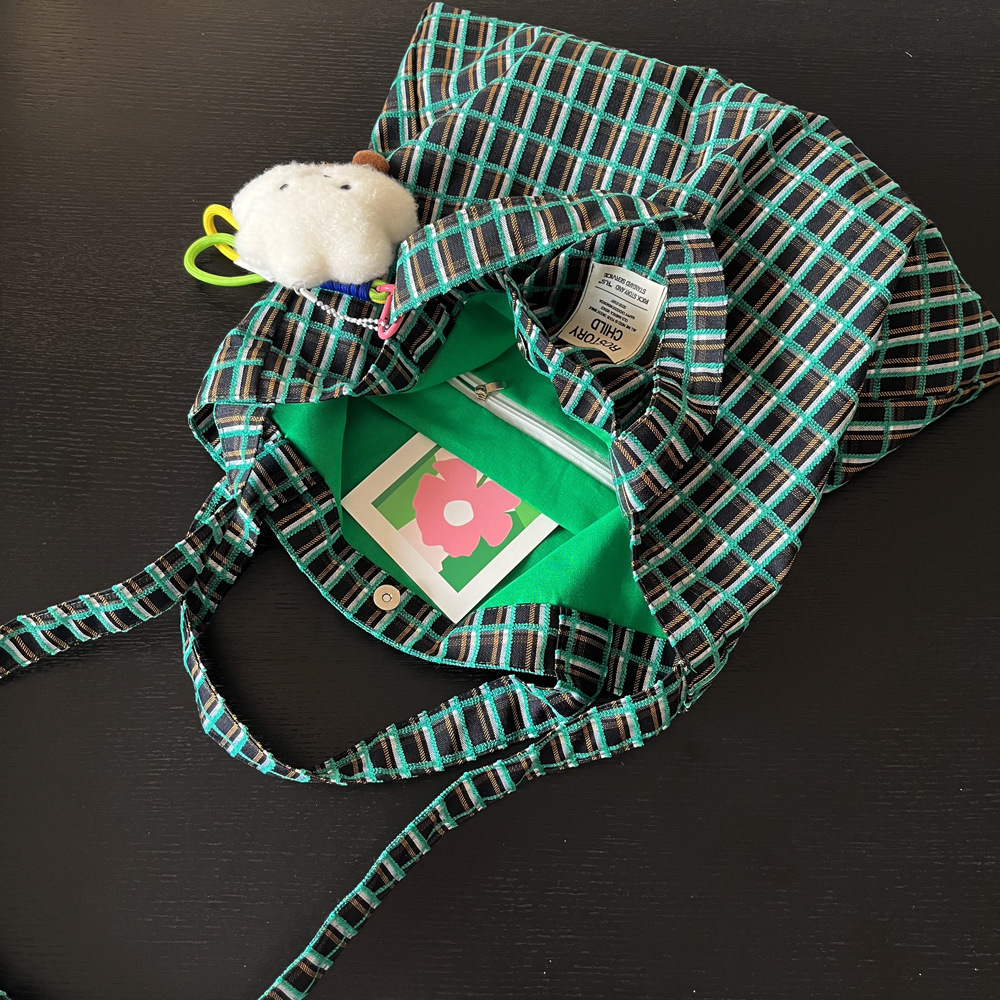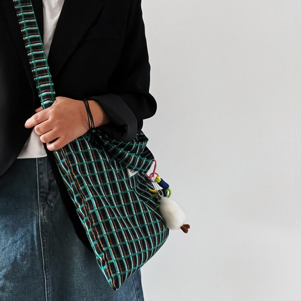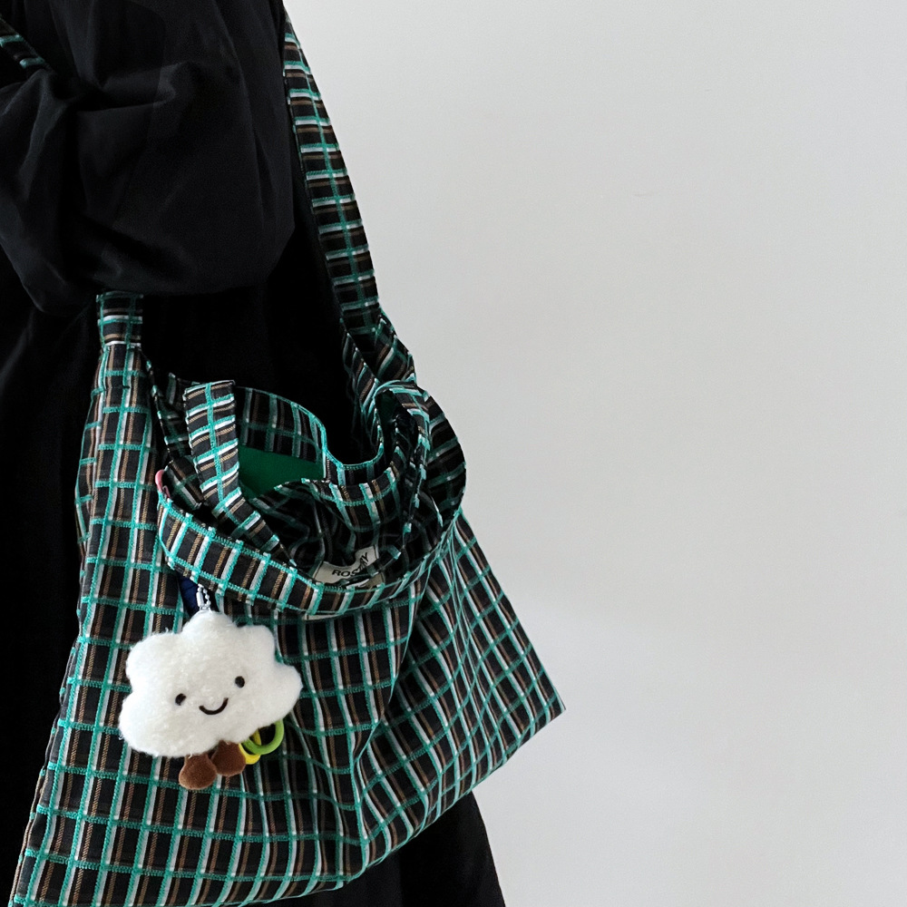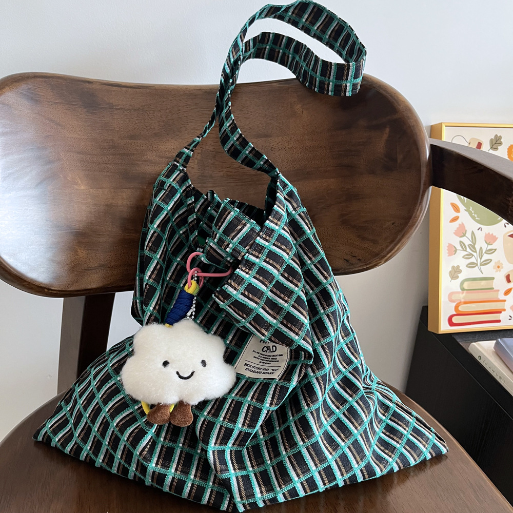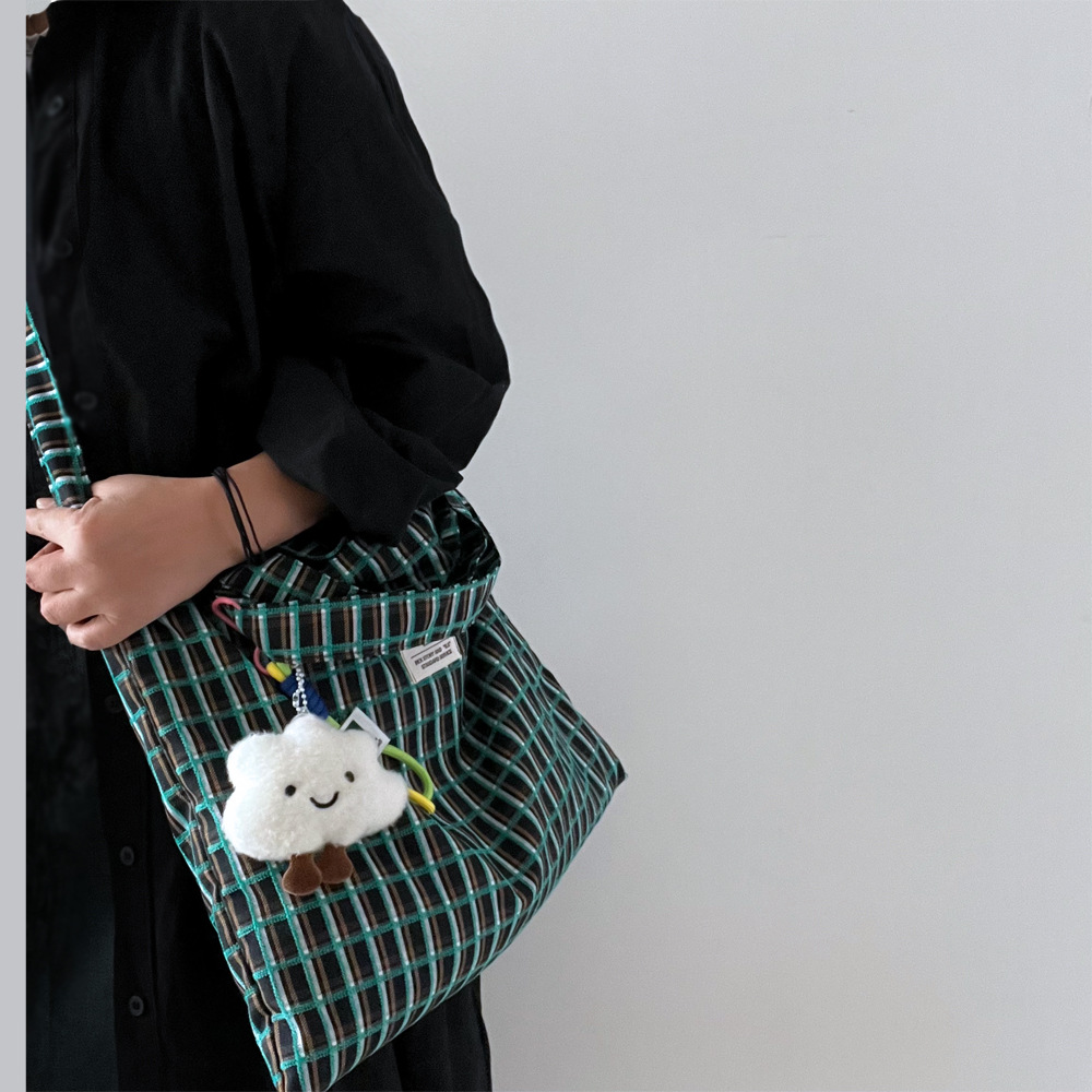 春のジャカードの緑の格子の衝突色のショルダーバッグの大容量の斜めなショルダーバッグのハンドバッグの通勤の小さい大衆の設計のキャンバス