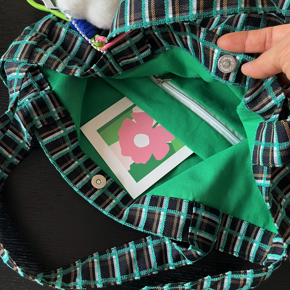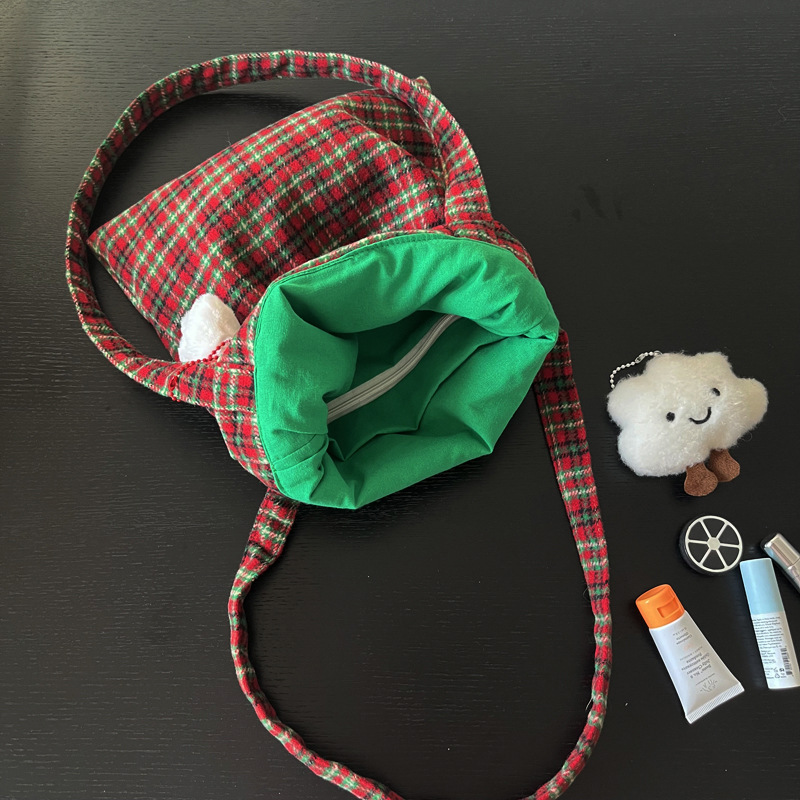 秋上新羊毛格子单肩包经典的红绿撞色呢子包气质百搭设计款女包