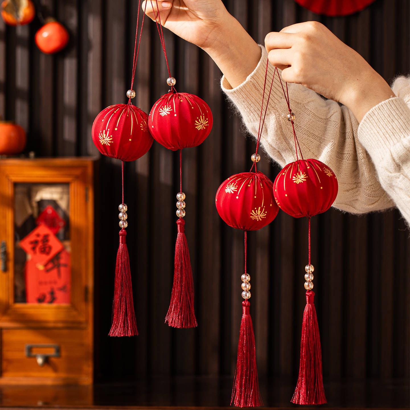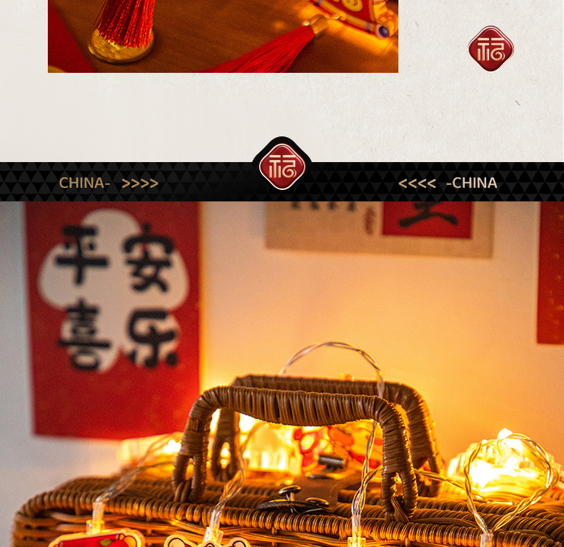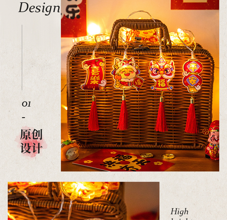 福旺年新年飾り春節提灯掛け飾りお祝い結婚新年ライト籠ストラップ
