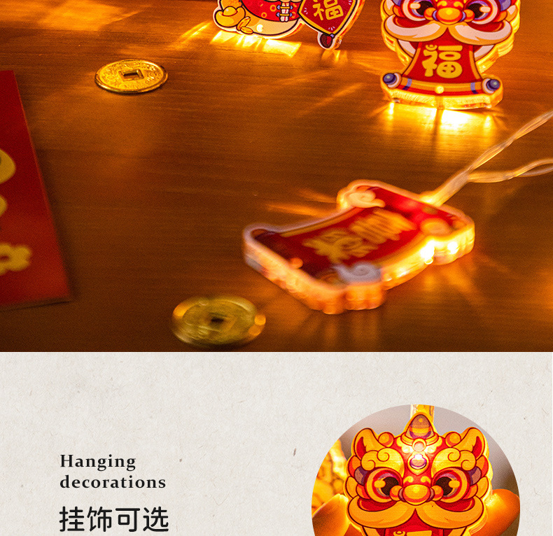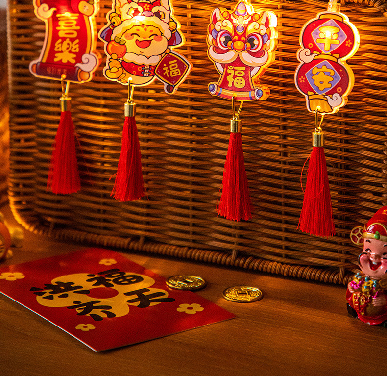 新年飾り吸盤ライト、春節吊り下げ飾り、春節提灯、家庭用新年シーン装飾、提灯吊り飾り