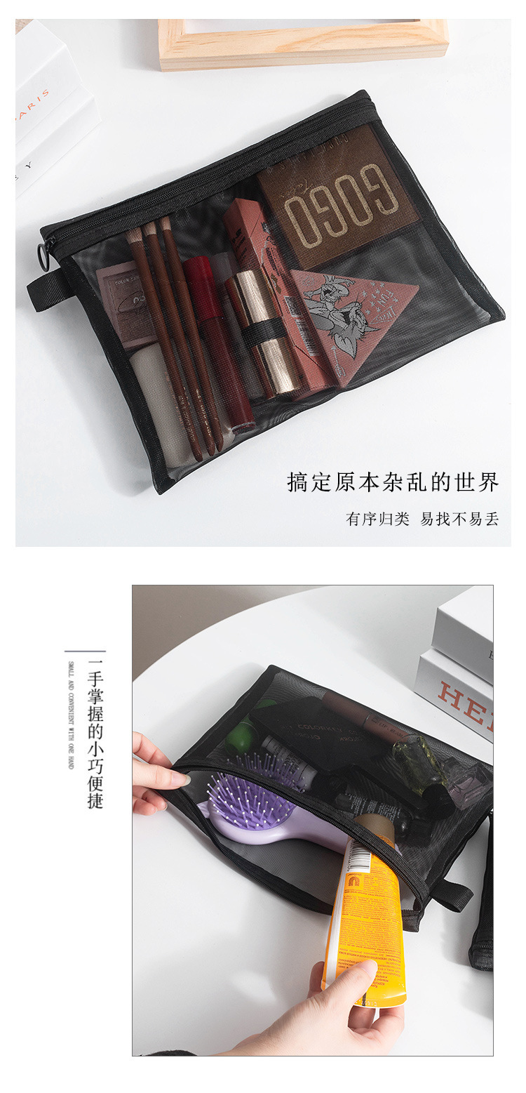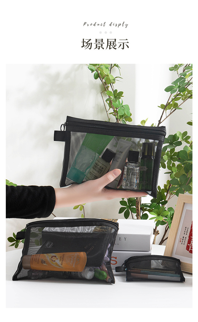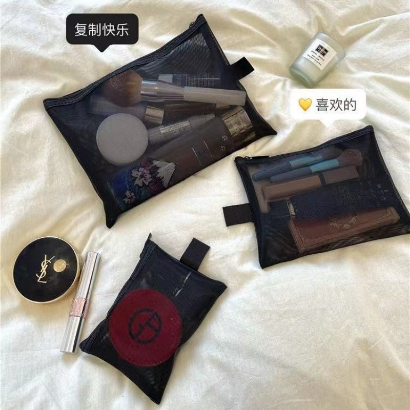 跨境黑色网纱包洗漱便携收纳袋口红彩妆收纳包简约旅行收纳化妆包
