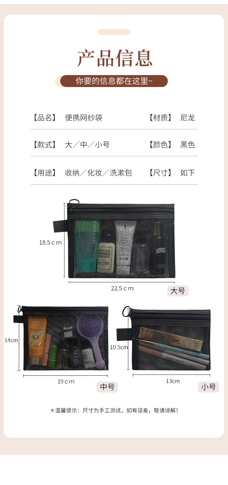 透明网纱化妆品收纳包简约随身大容量收纳袋洗漱镂空镂空设计便携