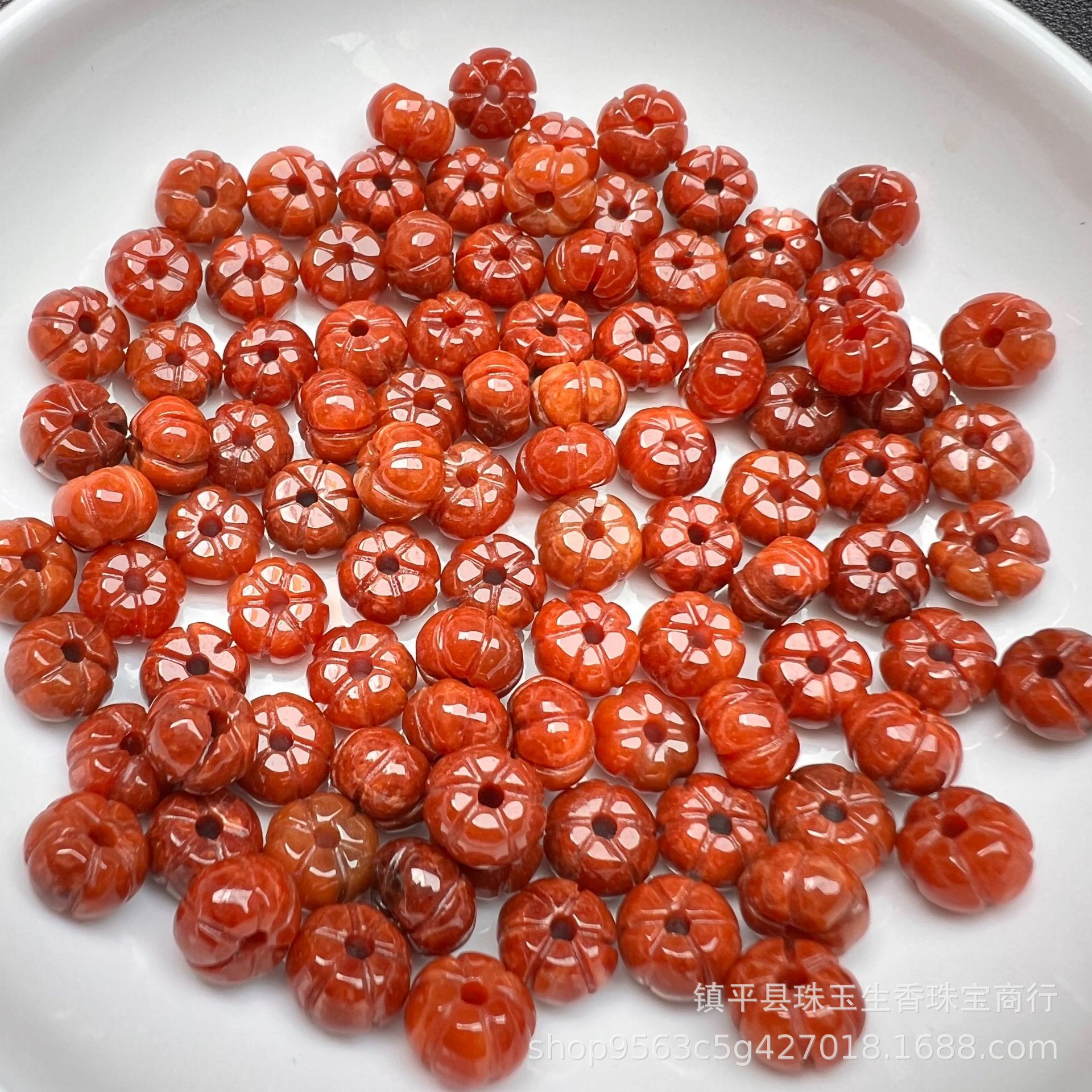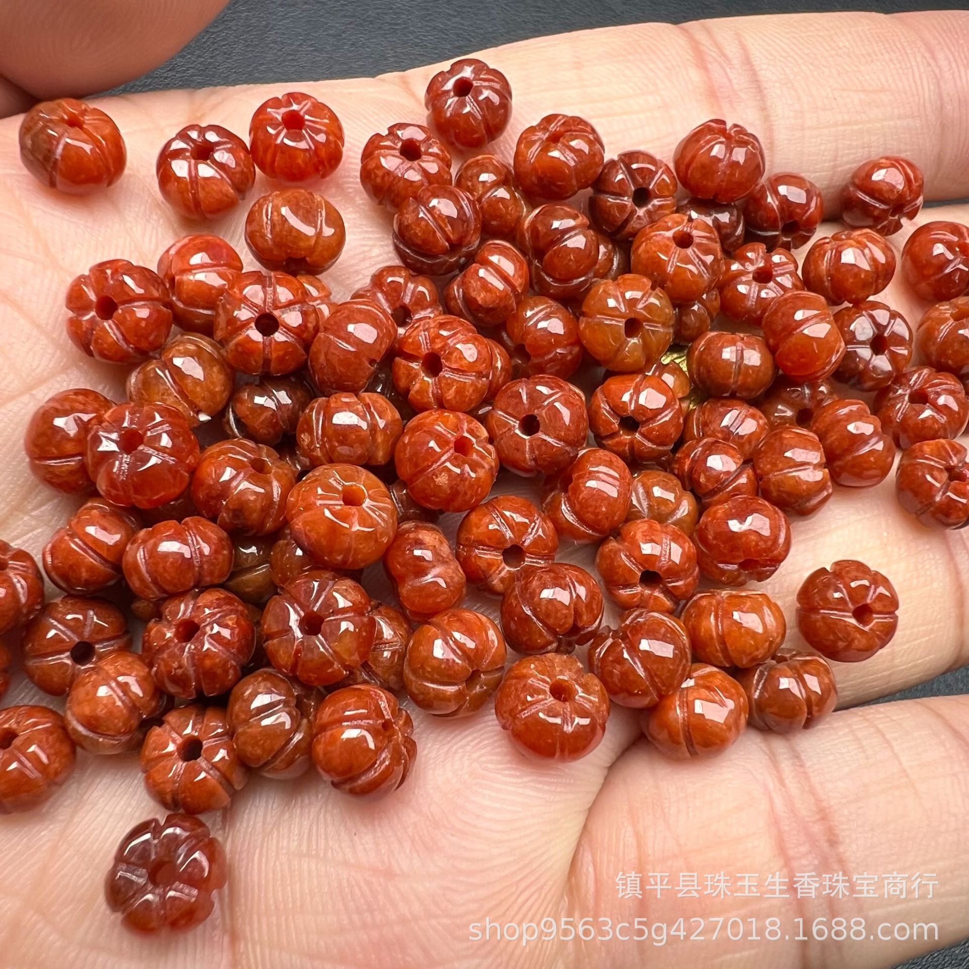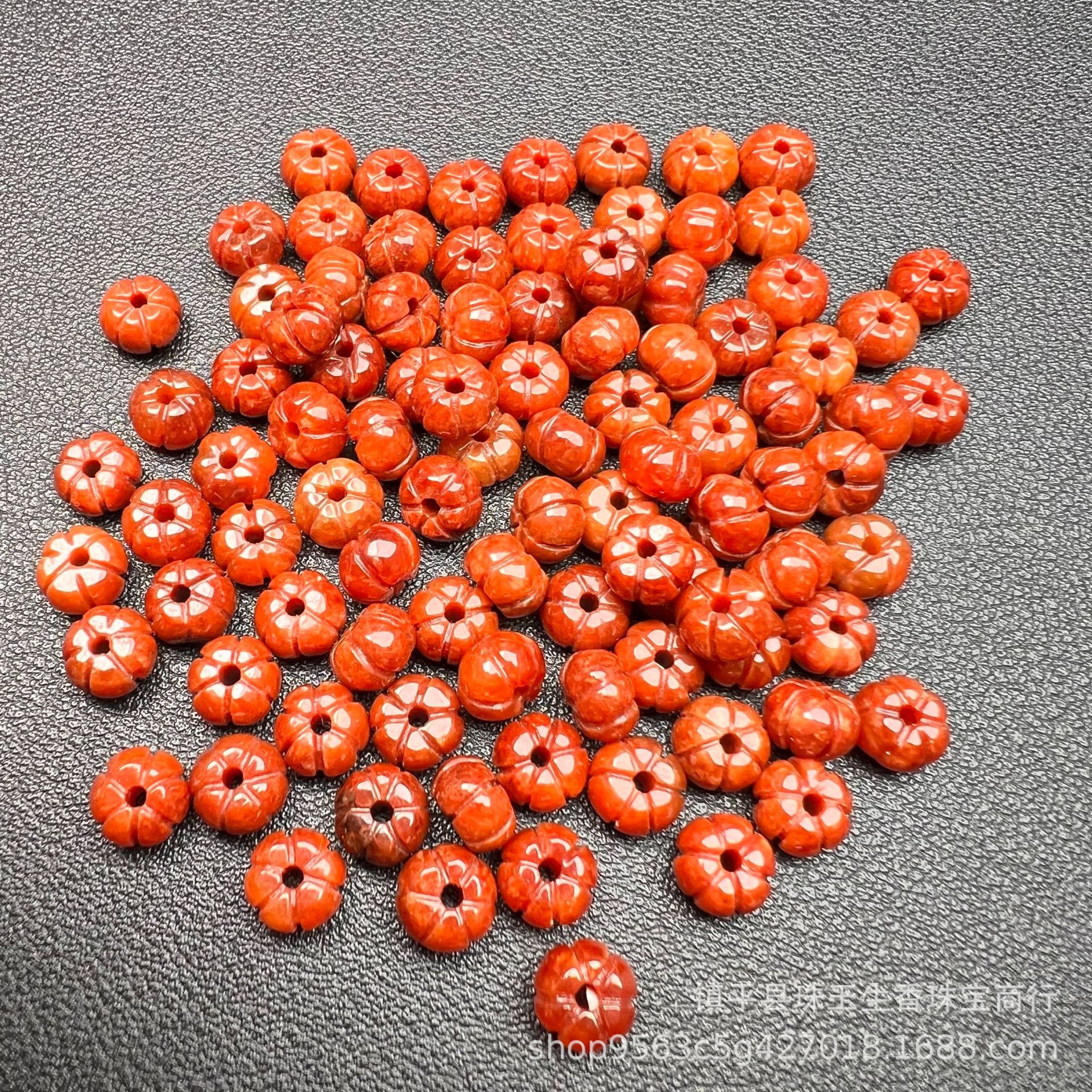 翡翠玉8x5mm赤翡翠カボチャ玉散珠翠玉平カボチャビーズdiyブレスレットネックレスアクセサリー