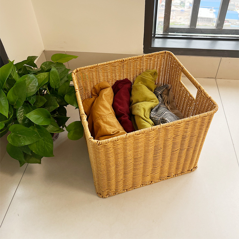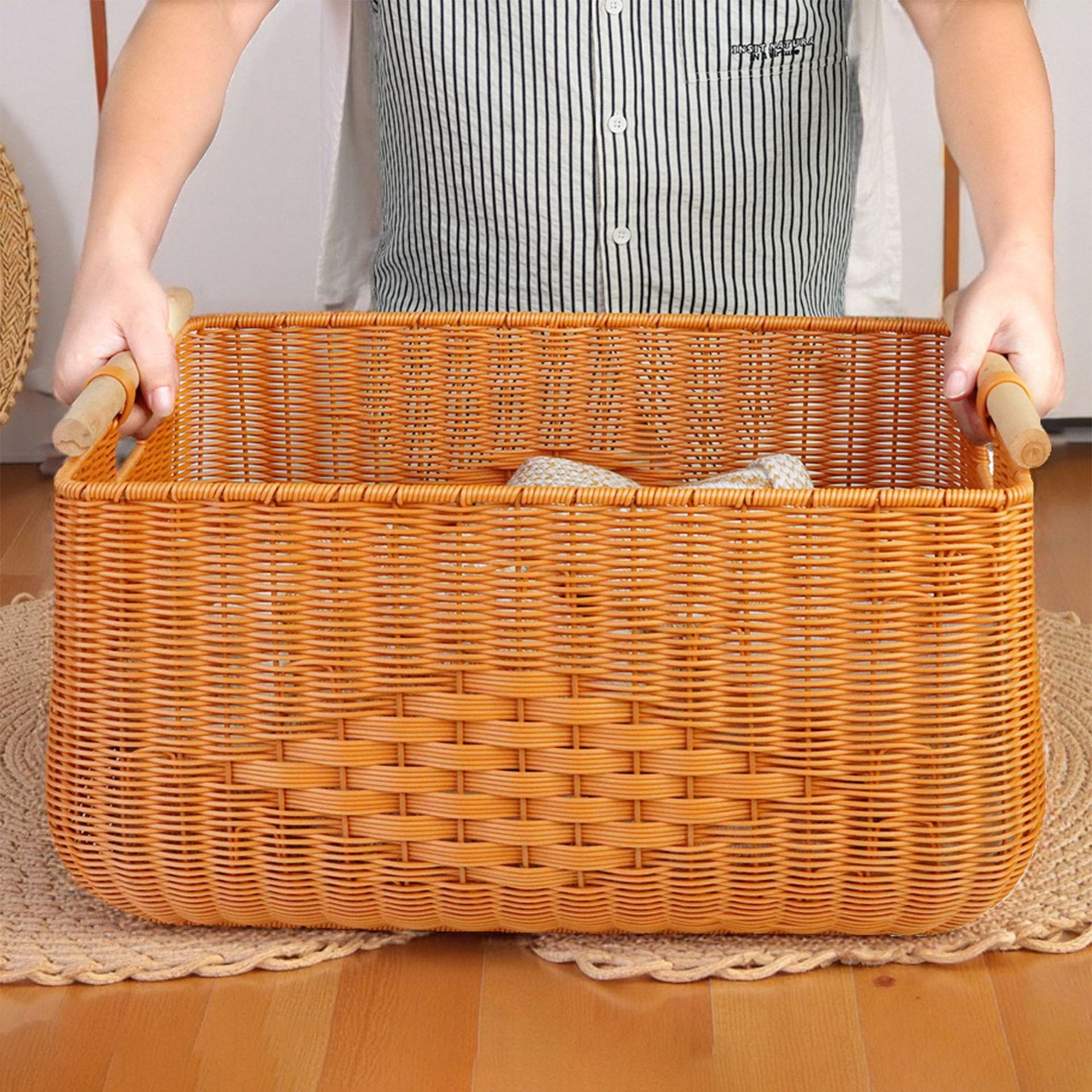 編み柳編み収納道具箱模造藤手提げスーパーショッピングピクニックバスケット長方形物置雑物収納バスケット