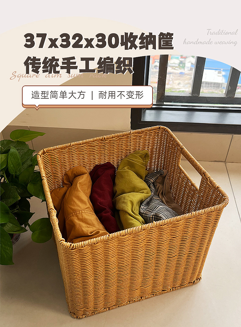 仿藤编织收纳筐塑料超大号整理箱简约客厅橱柜零食储物篮玩具筐