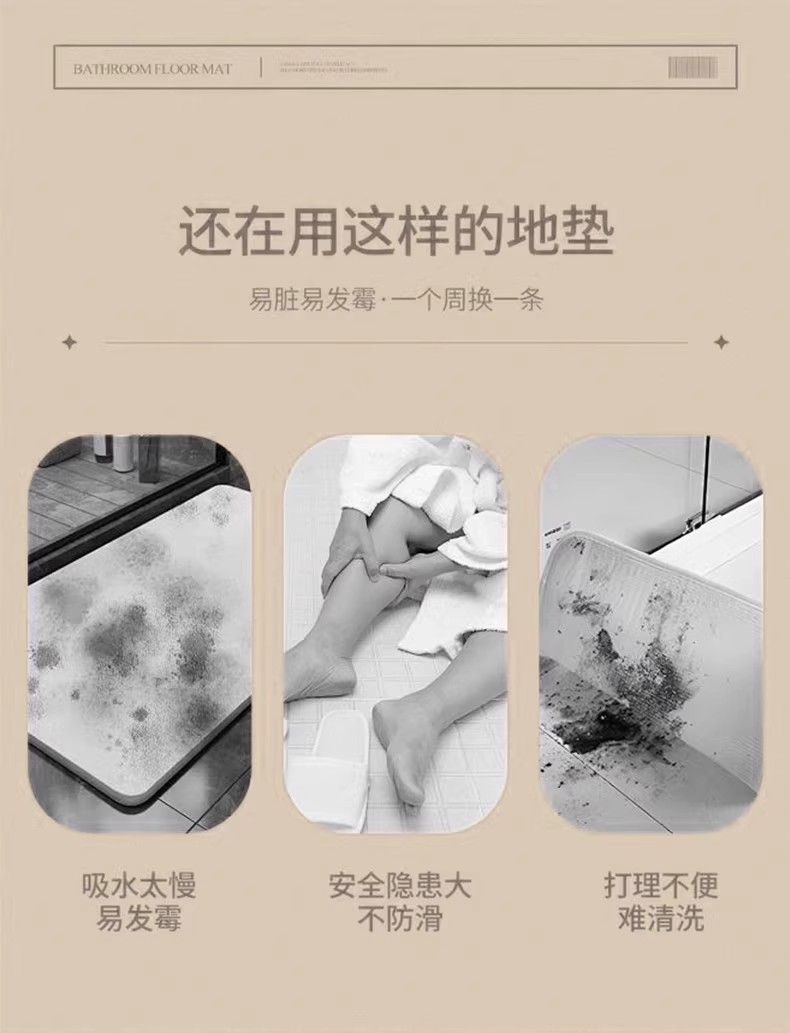 跨境厨房地垫简约硅藻泥地垫吸水吸油速干脚垫耐脏耐磨防滑垫批发
