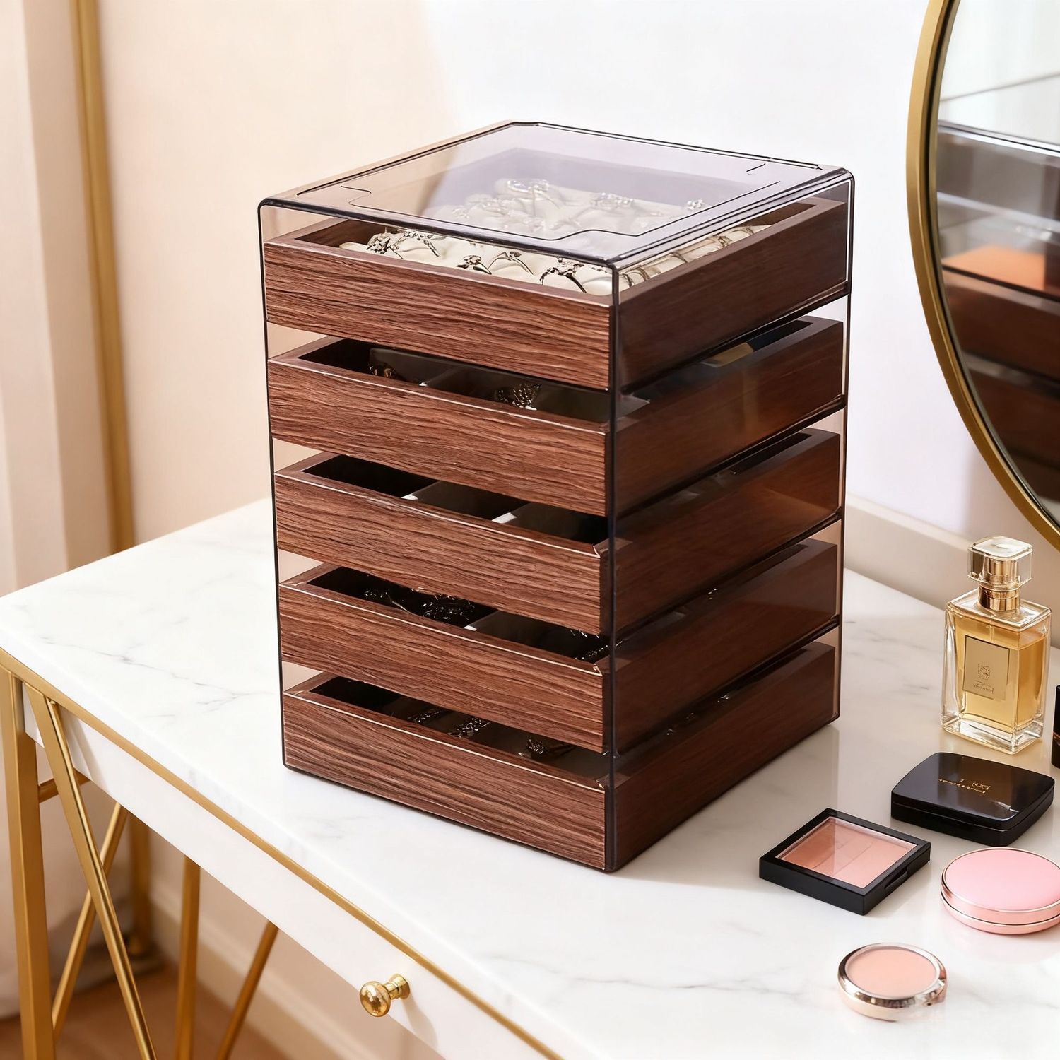 ネイル収納ケース多層ジュエリー引き出し式アクセサリーアクリルネックレス箱デスクトップドリル透明大容量