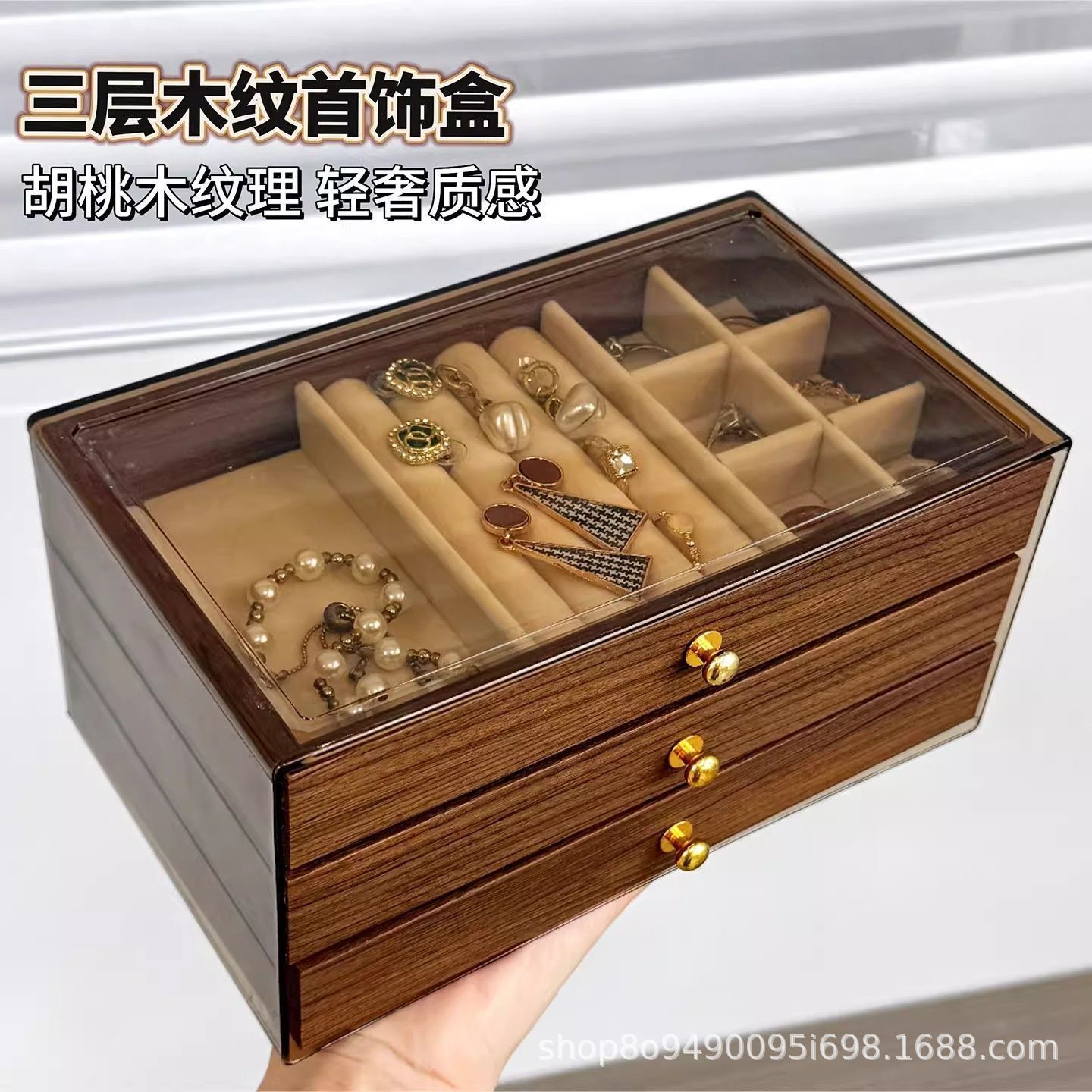 首饰盒高档精致项链耳环胡桃木纹大容量2025年新款饰品多层收纳盒