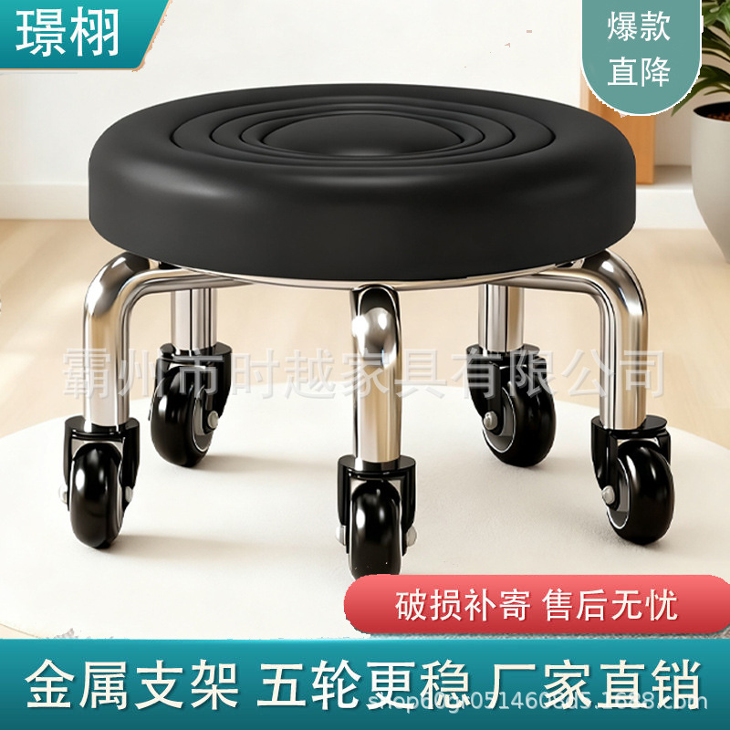 高められたユニバーサルホイール小さなスツールサイレントバックチェアプーリー低スツールベビーアーティファクトベンチ美しい縫い目スツール靴交換ホーム