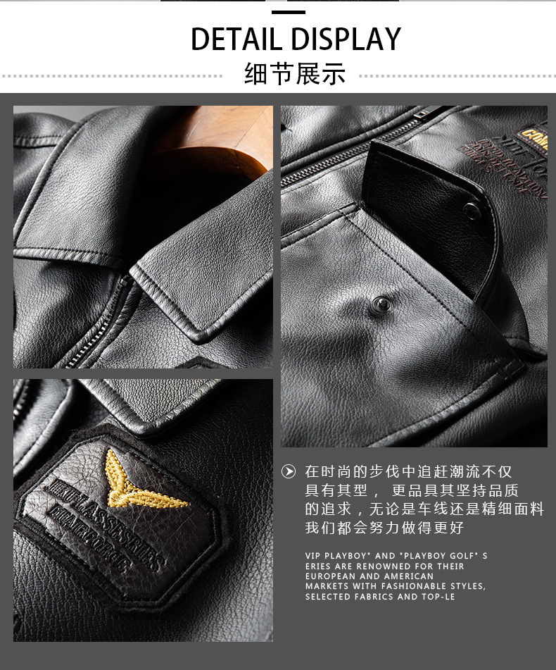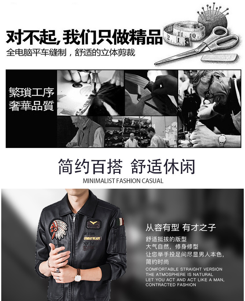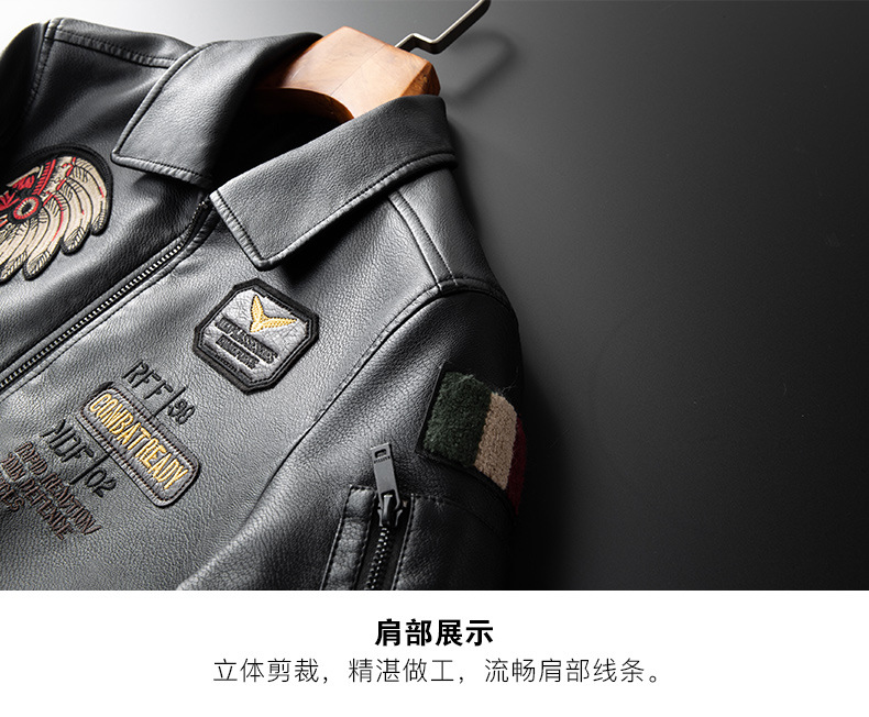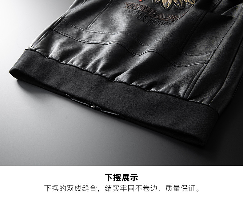 革の服の男とベルベットは国境を越えた多ポケット欧米刺繍pu革ジャケット機関車の襟を厚くした革の服のコートを厚くした