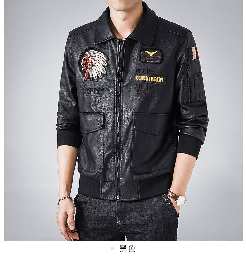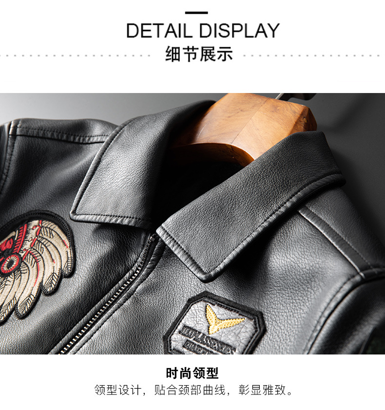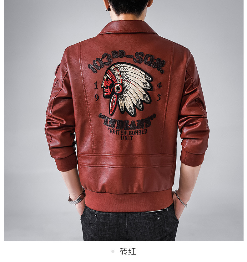 2024新商品の上着とベルベットの秋冬革ジャケットの刺繍インディアンの顔の方襟のレトロなアメリカ機
