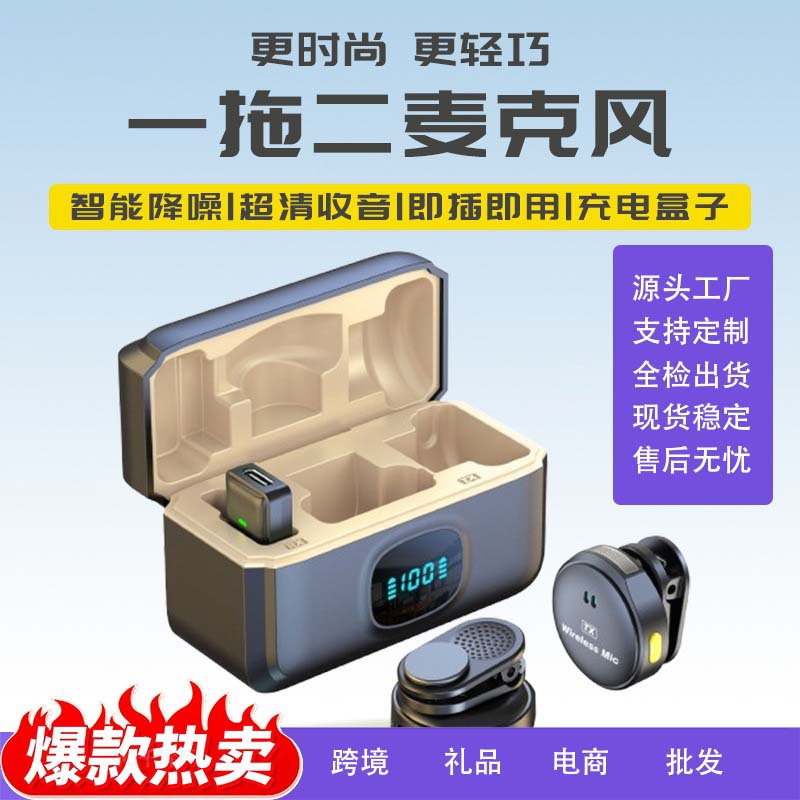 越境人気Qシリーズワイヤレスラベリアマイク磁気ボタン式ライブ配信ノイズキャンセリングワイヤレスマイク工場卸売