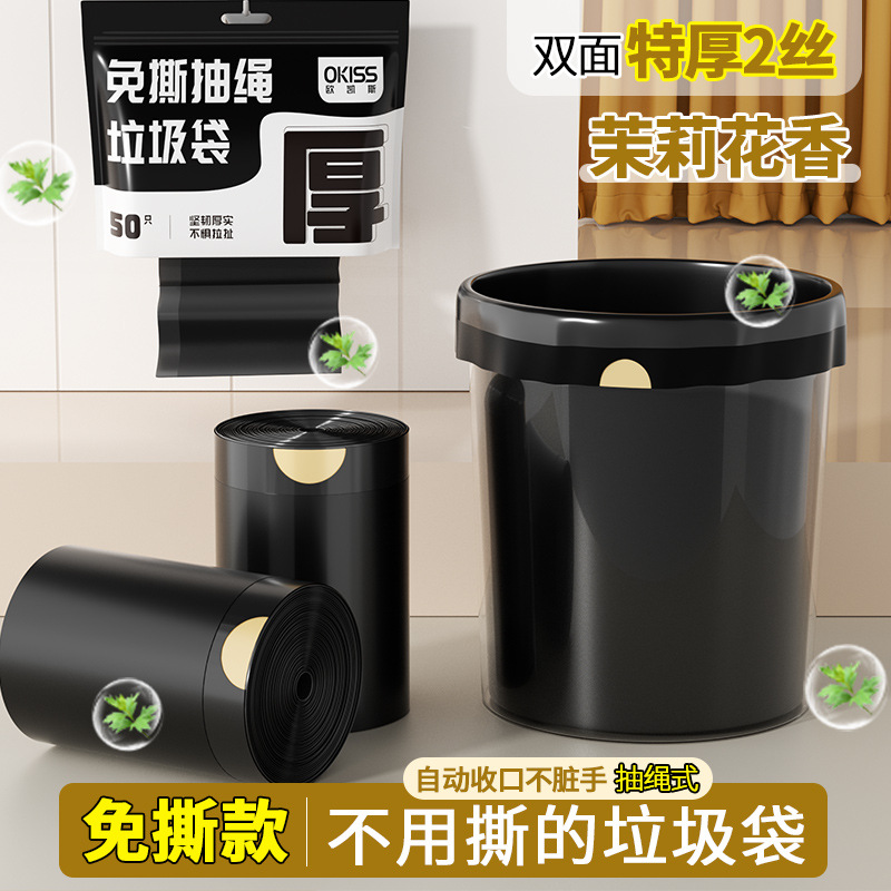 免撕抽绳式家用黑色垃圾袋不脏手一抽即用袋装加厚加大垃圾袋批发
