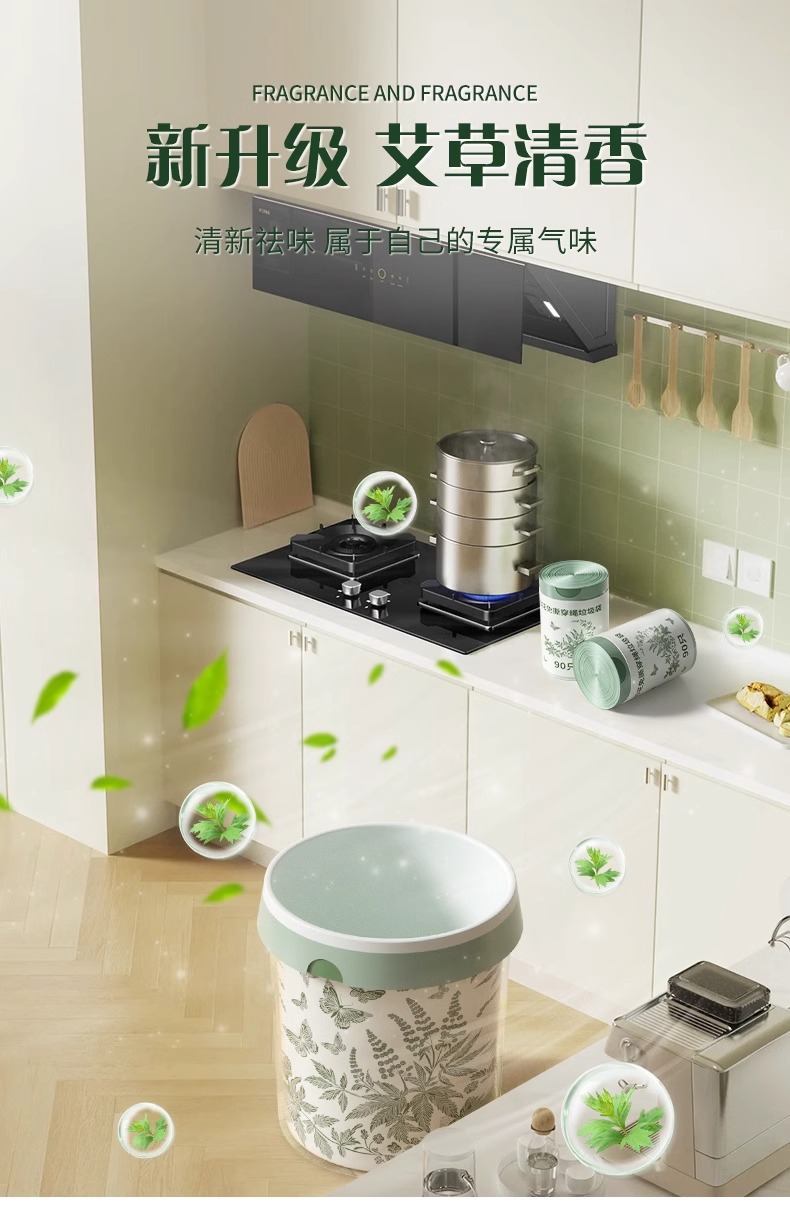艾草垃圾袋家用加厚手提式防厨房蚊虫免撕抽绳大号厨余祛味塑料袋