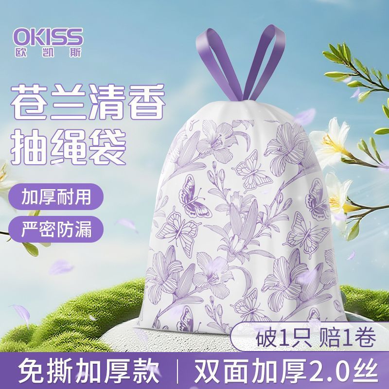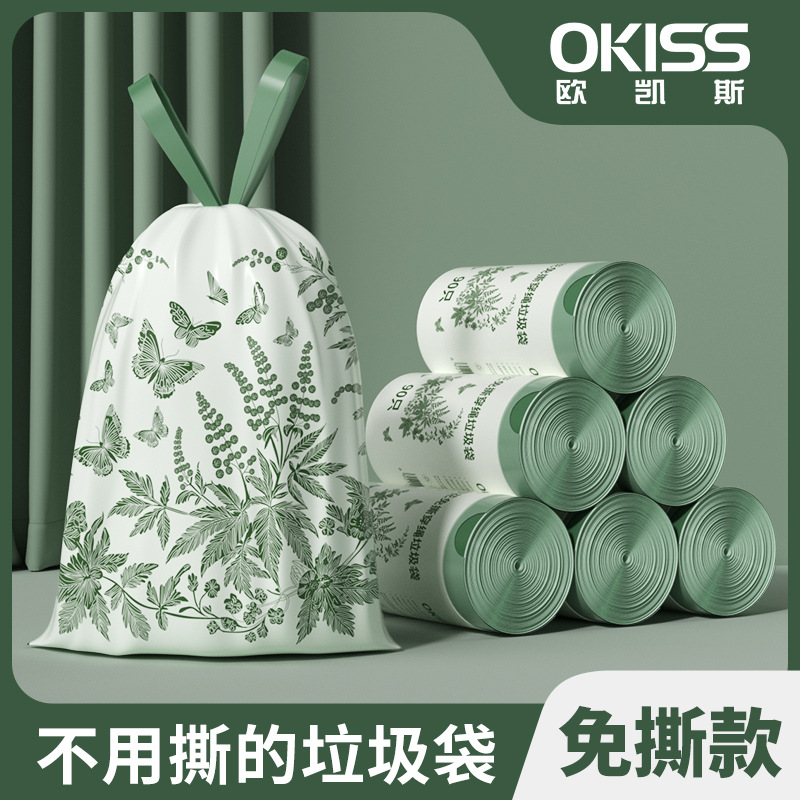 Okiss/欧凯斯垃圾袋加厚手提式免撕抽绳厨房专用塑料清洁袋实惠装
