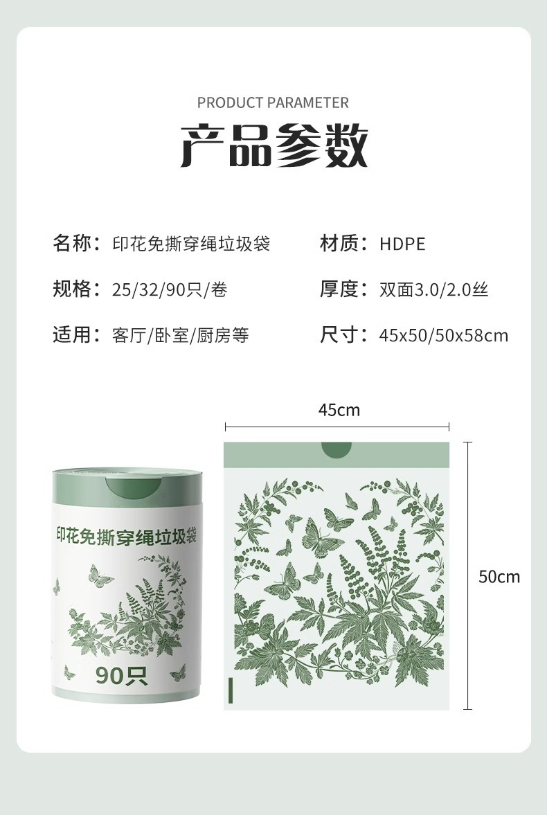 【草の香りを引き裂かない】ゴミ袋のプリントは縄を引きます。