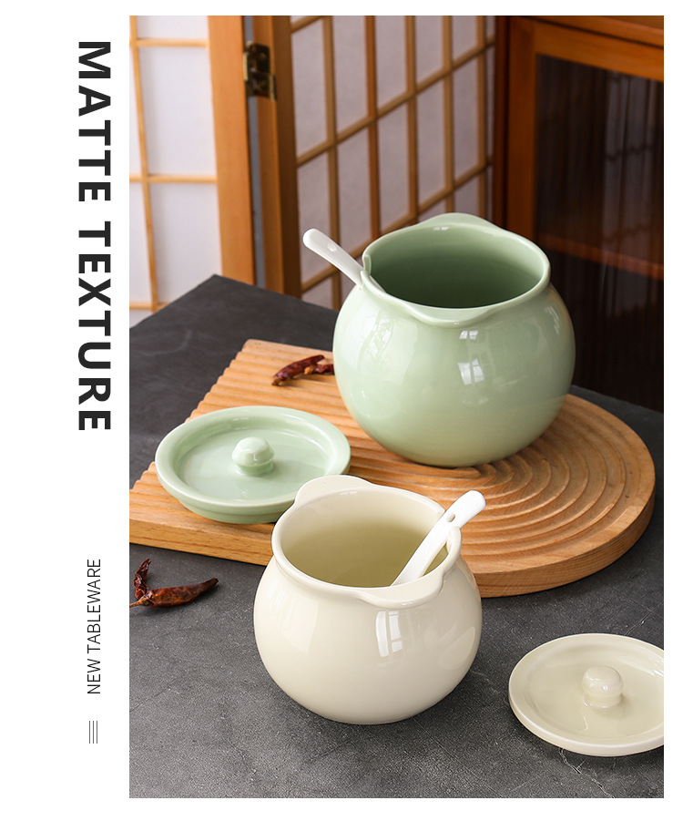 豚油タンク家庭用耐高温セラミックスプーン付き蓋付き北欧クリーム風キッチンかけ辛い缶肉油缶
