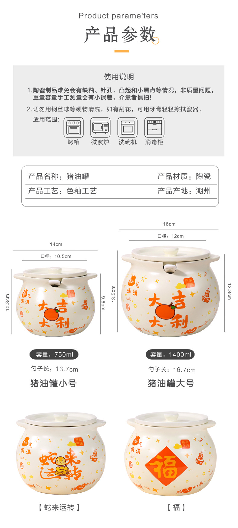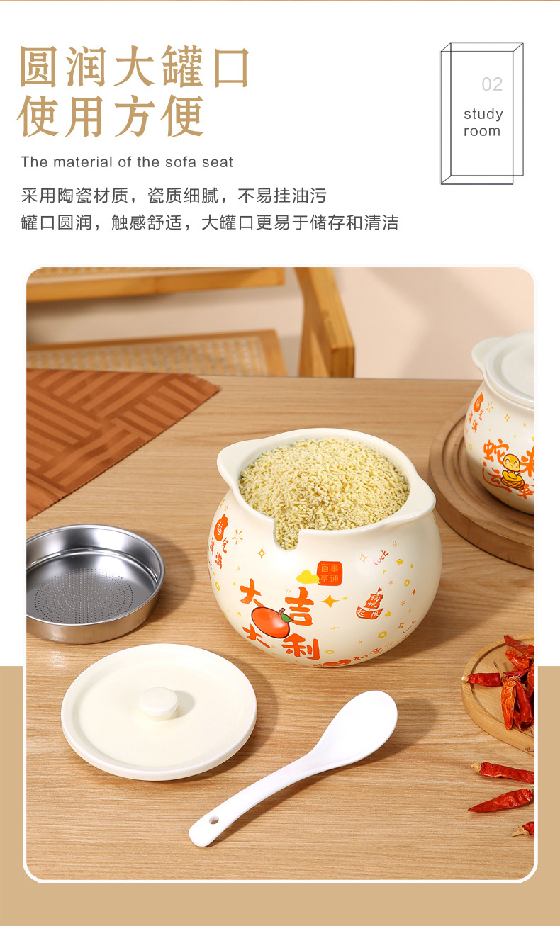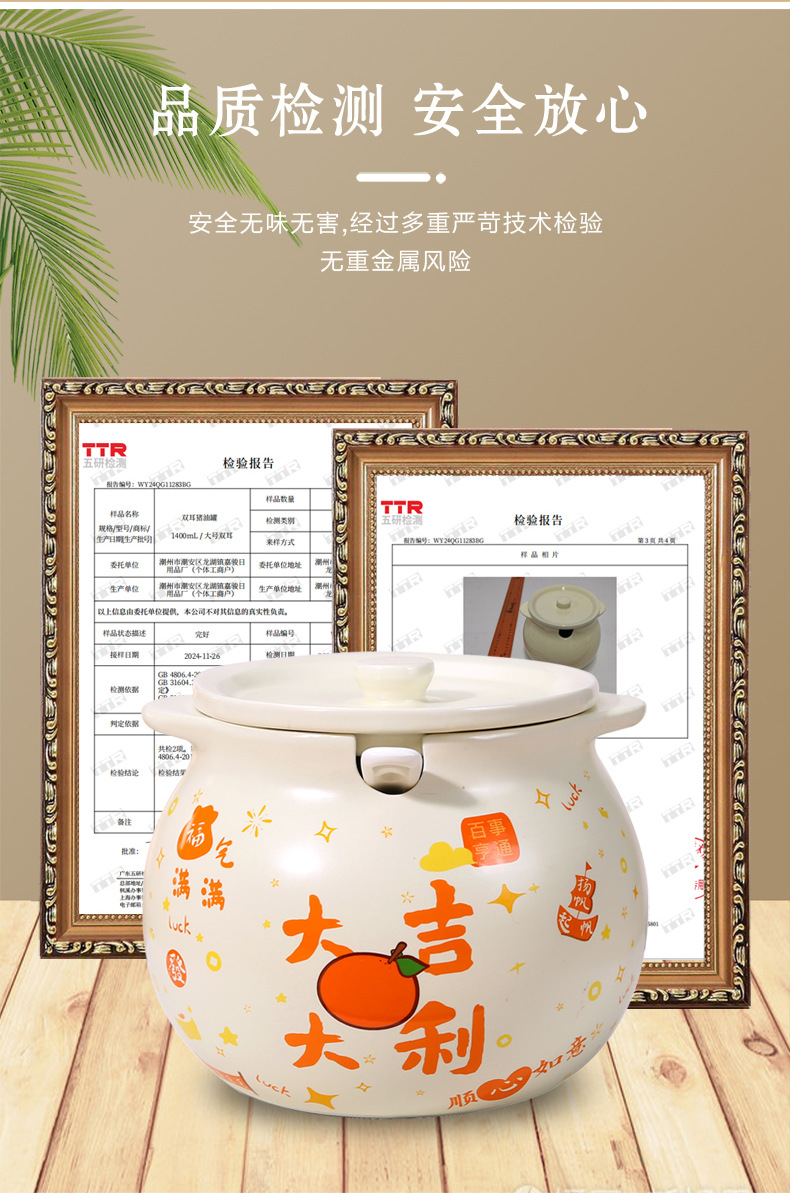 豚油缶陶磁器釉薬下彩家庭用大型耐高温調味料箱調味料缶台所唐辛子油生臭物缶