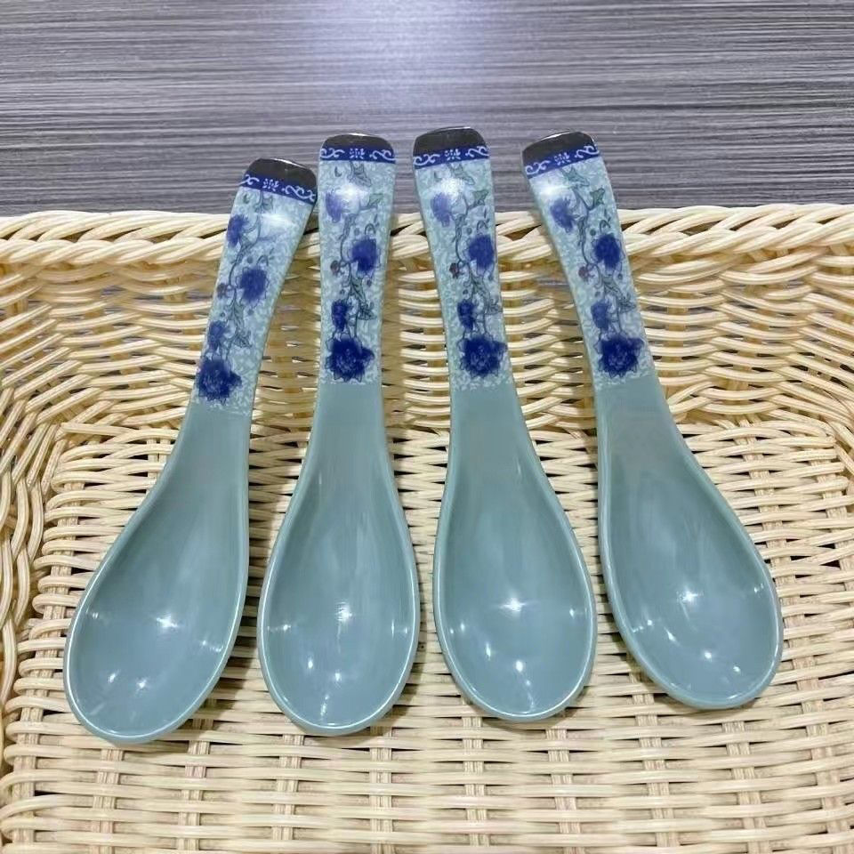模造磁器メラミンスプーンA5商用プラスチックスプーン短柄耐高温青花磁器スープレストラン卸売り