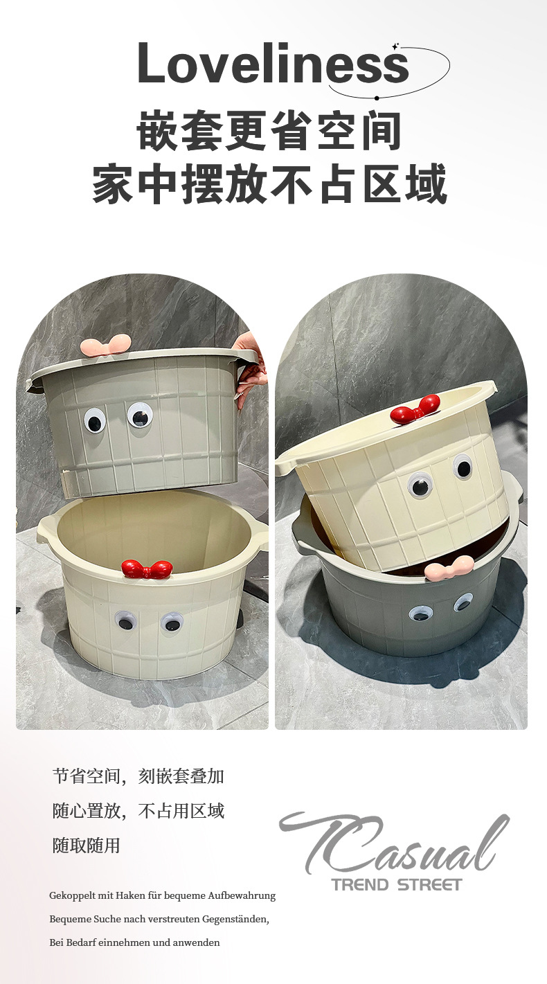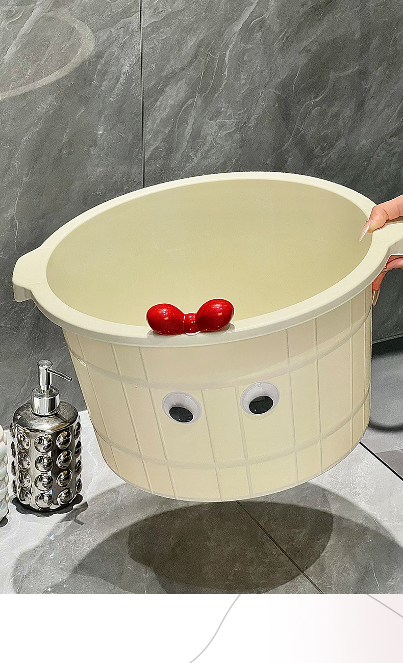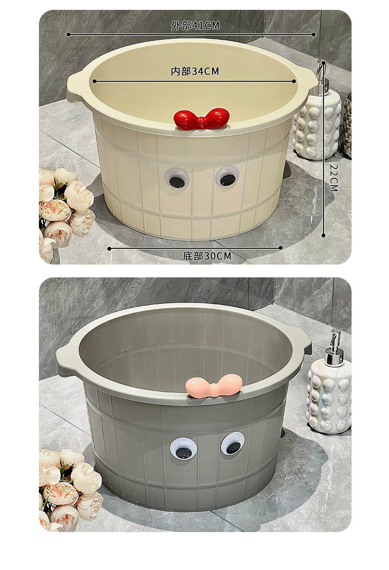 仕様 丸い足洗いバケツ乳白色+目を大きくするリボン,丸い足洗いバケツ グレー + 蝶ネクタイで目を大きくする
