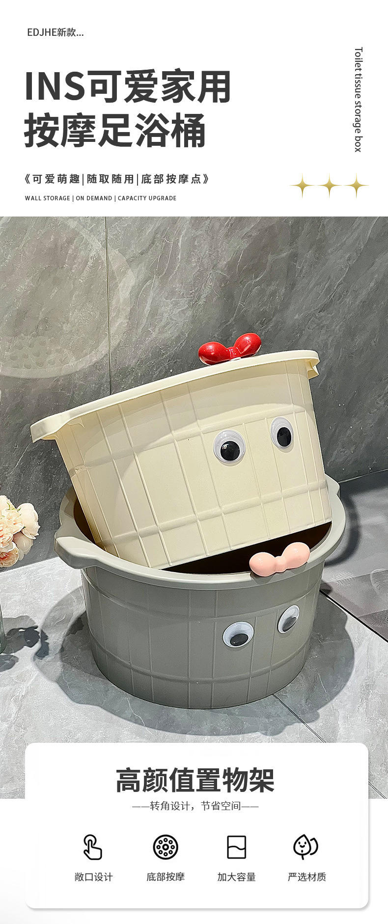 足湯桶家庭用クリーム風秋冬保養保温と足マッサージのプラスチック足風呂桶洗足鉢