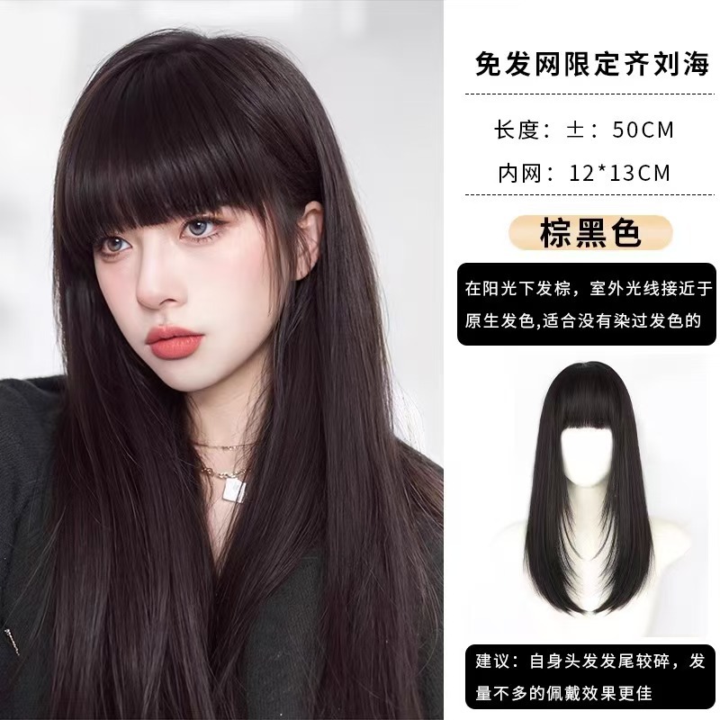 【ダブルポニーテールも可能】Cheng Mingウィッグ 女性用 ロングストレートヘア コールドブラウン 学生 甘い インターネットセレブ 夏用 フルヘッドギア