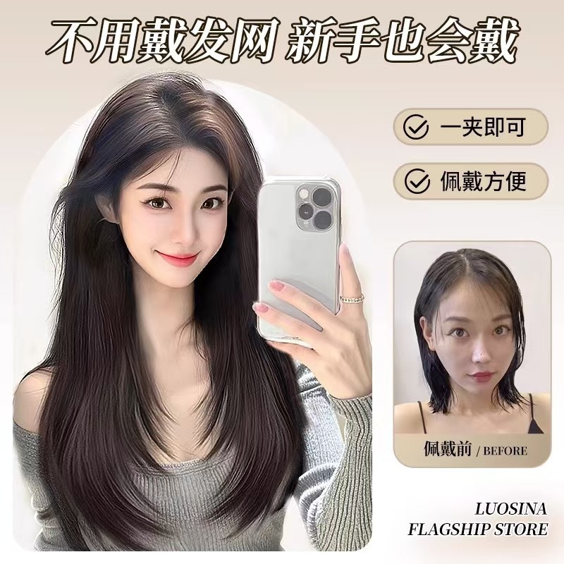 【不用戴发网】假发全头套女仿真人发头顶补发片直发大面积假发套