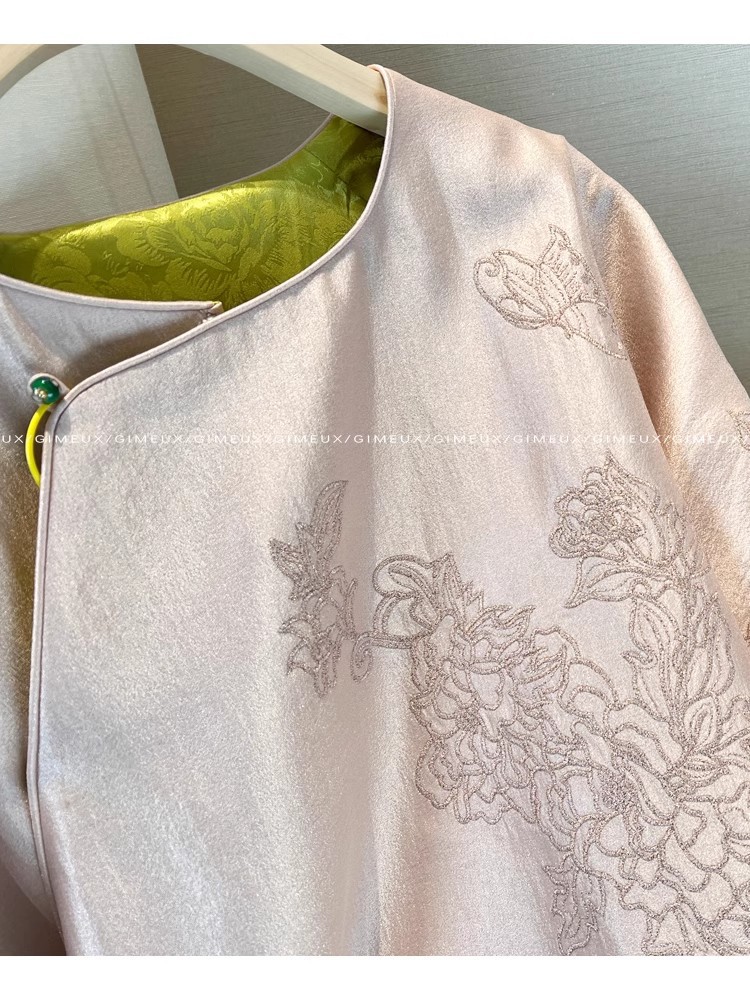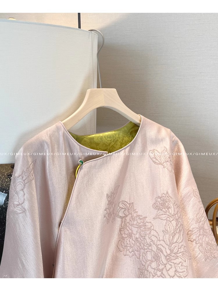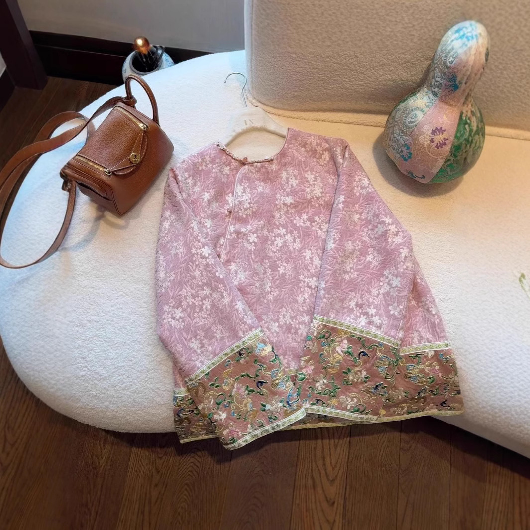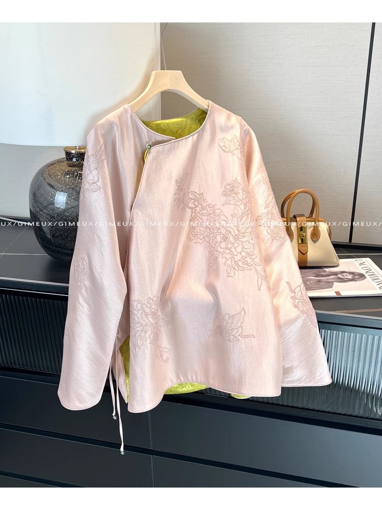 2025 早春の新中国風重工業刺繍優しいガーリースプライシングジャカード斜め前立てトップ