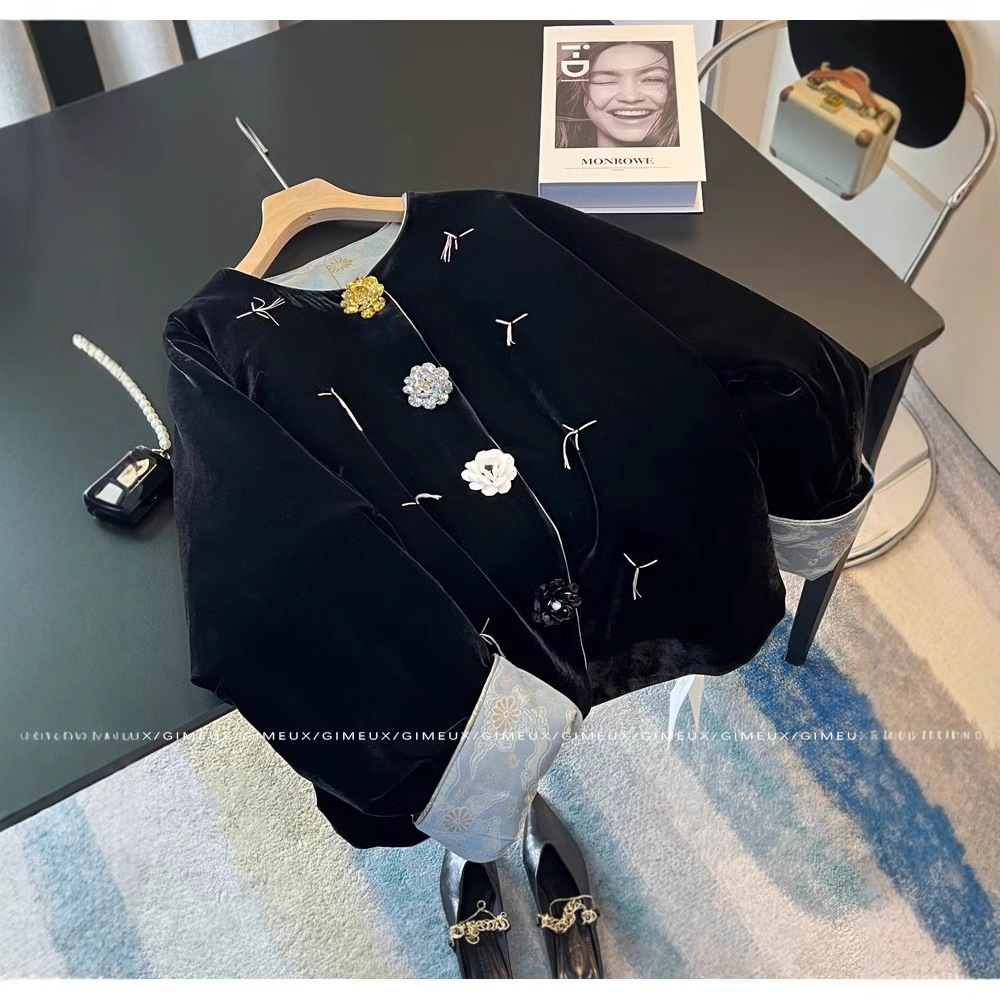 ハイエンドは重工のスパンコール刺繍新中国式国風馬甲女2025冬の独特なベルベットの復古ジャケットを着ている