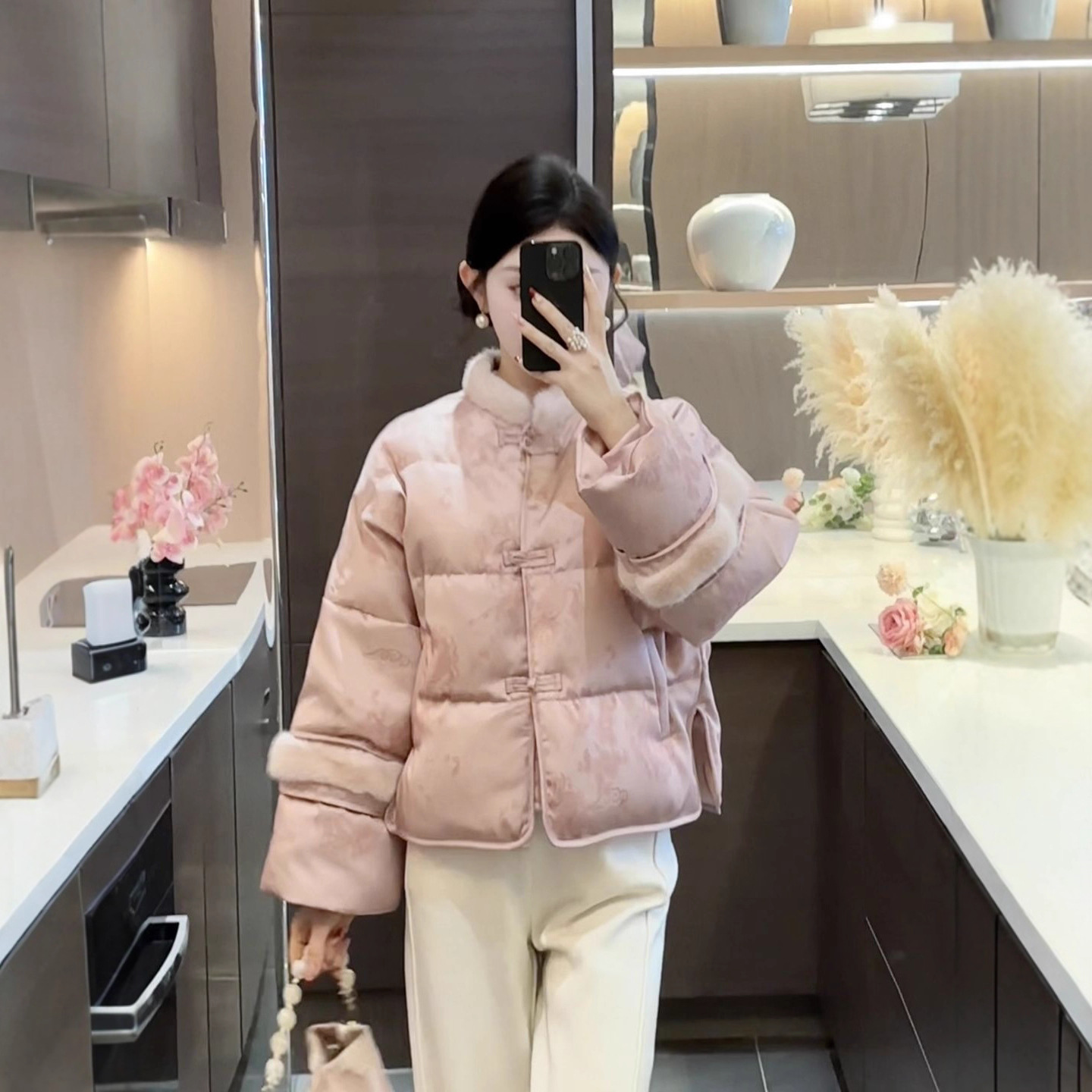 2024冬に今年流行した爆発金は独特で美しい高級感がある新中国風ピンクコート女