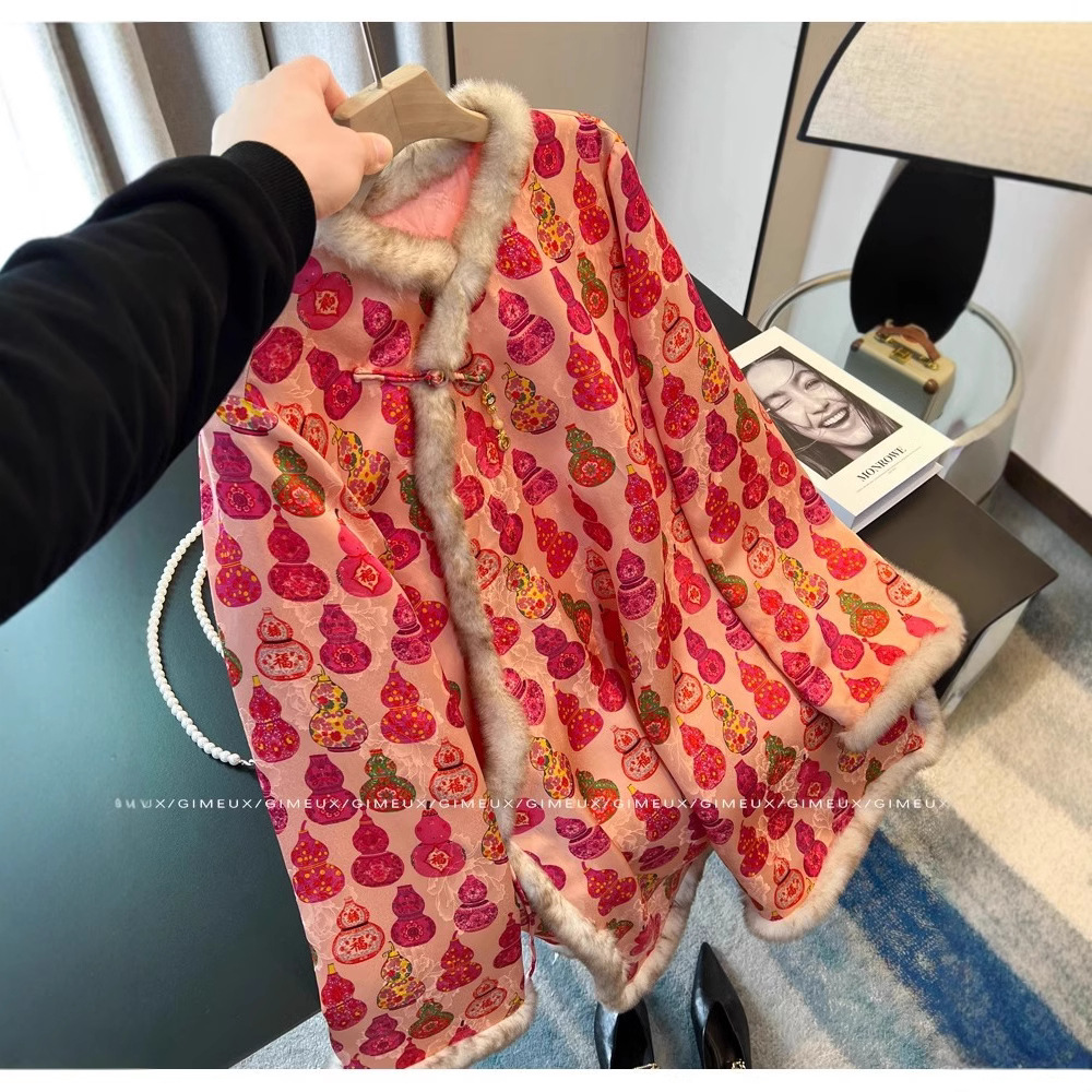 新年の軍服改良コートの女性2024冬の新中国風ミンクの毛を合わせながら、綿入れを厚くして新年を祝う服