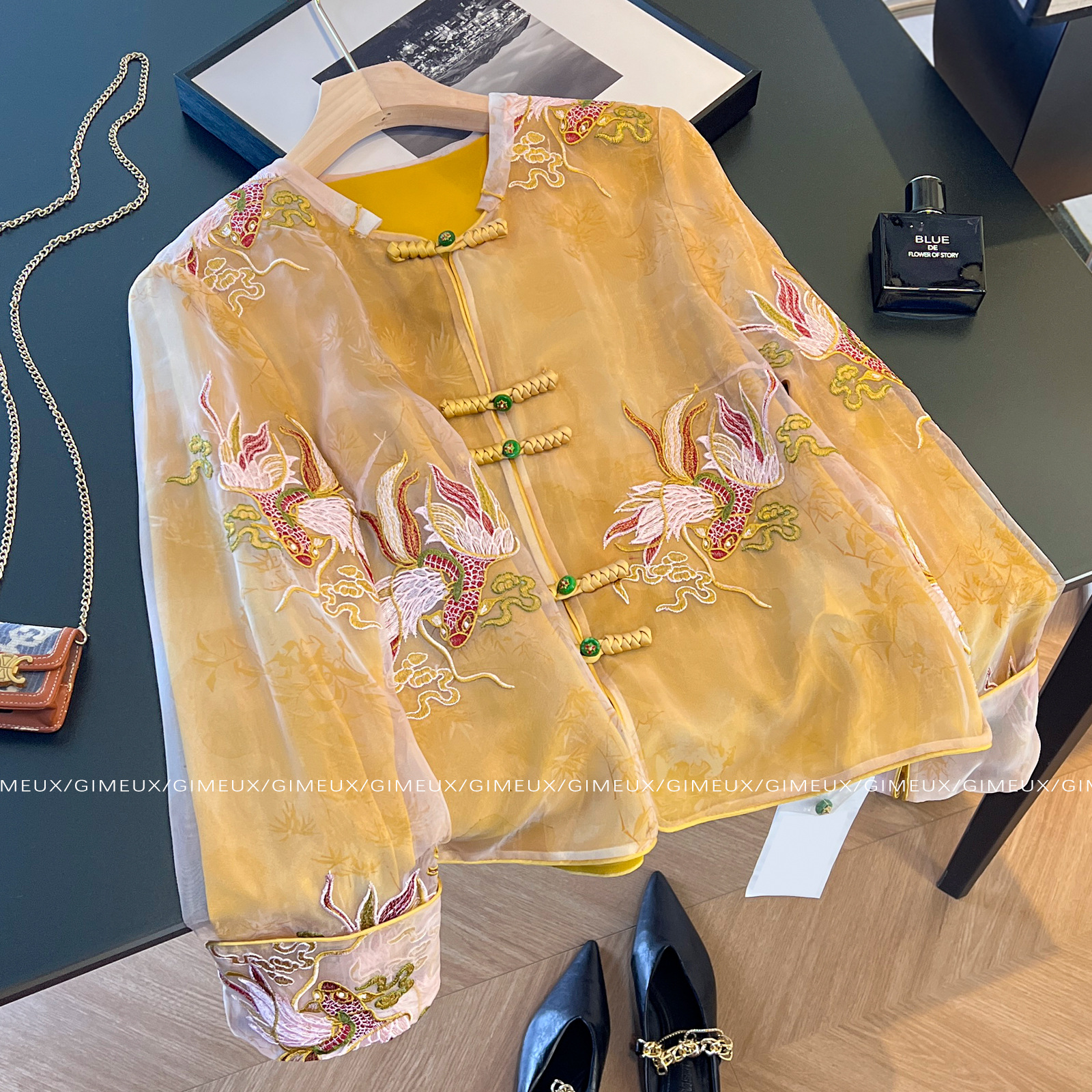 重工刺繍錦織改良唐装コート2024年秋の優雅な気質は肩の長袖の上着の女性にも似合う