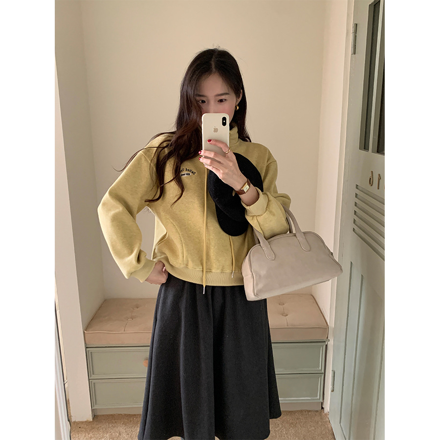 黄峥立领字母刺绣半拉链卫衣女25冬季休闲绒面保暖运动外套541156