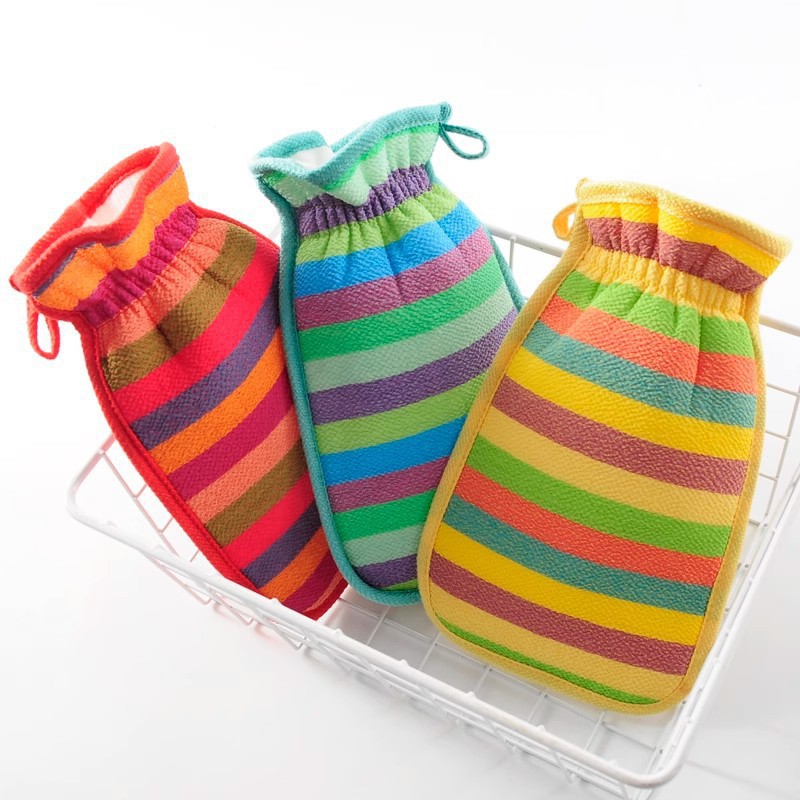 粗砂彩虹条搓澡巾洗澡巾搓泥搓灰洗澡手套双层加厚成人束口搓澡巾