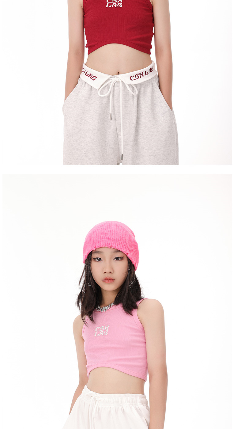 街舞潮牌美式爵士舞夏秋季kpop女棕色修身绑带背心嘻哈工装裤