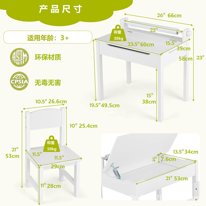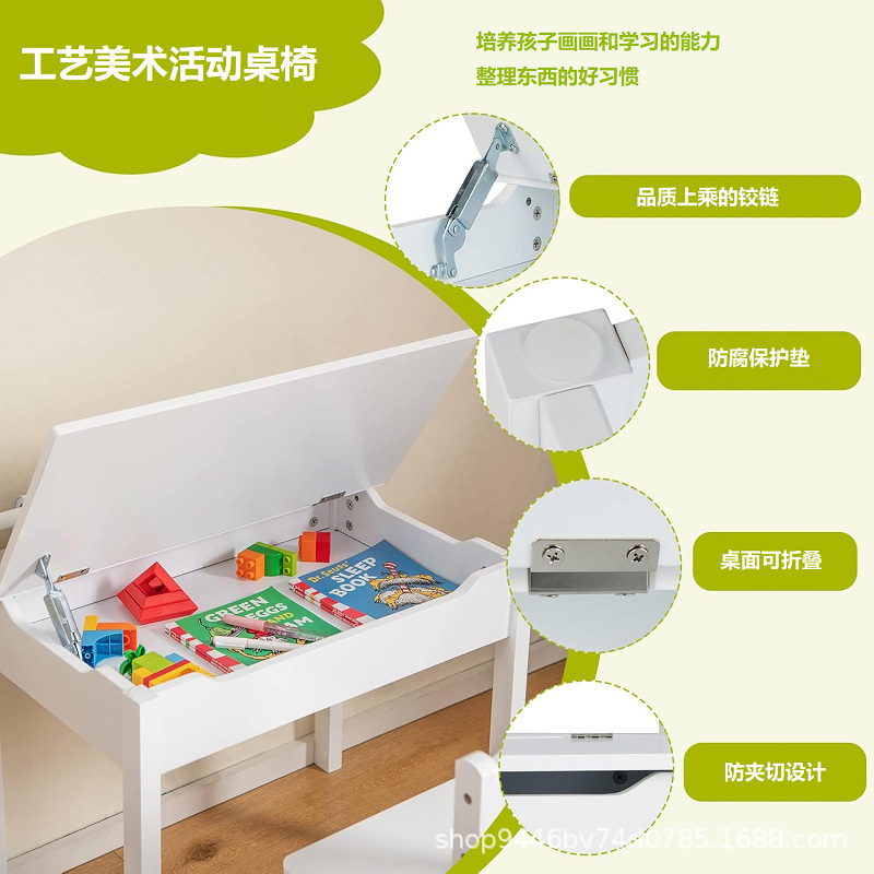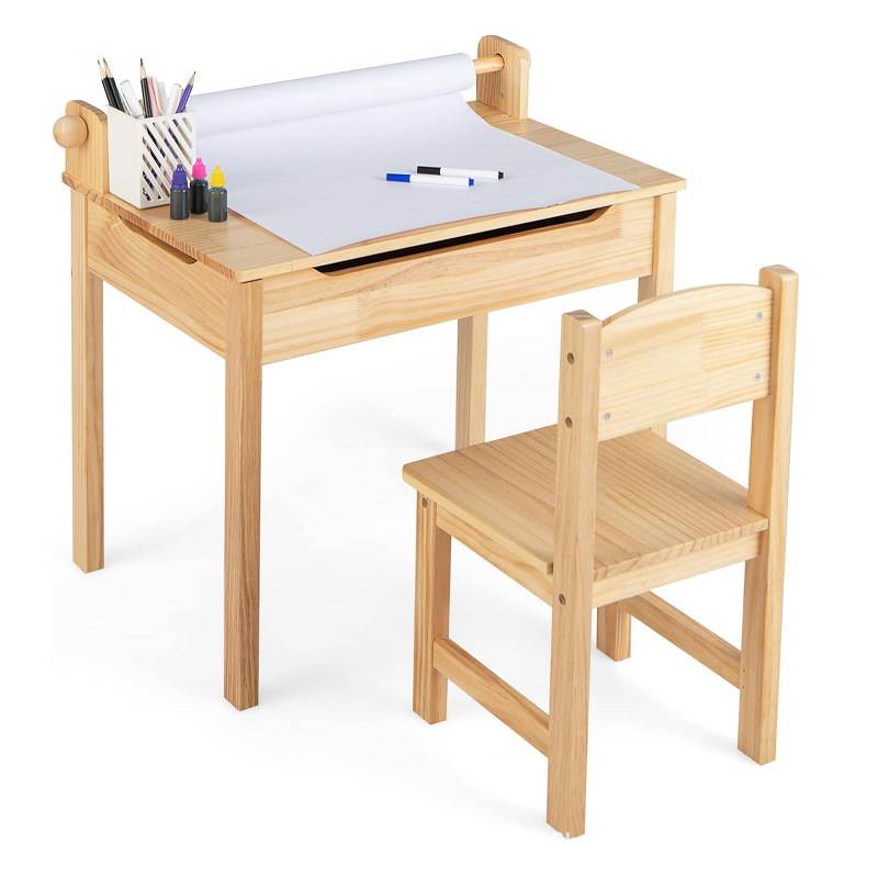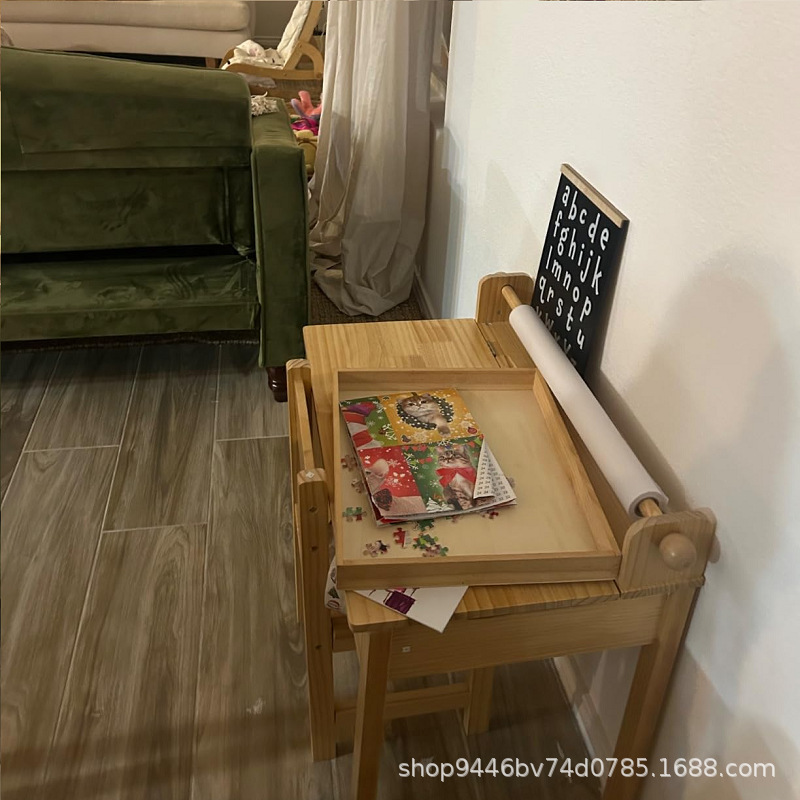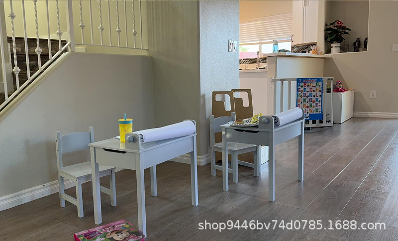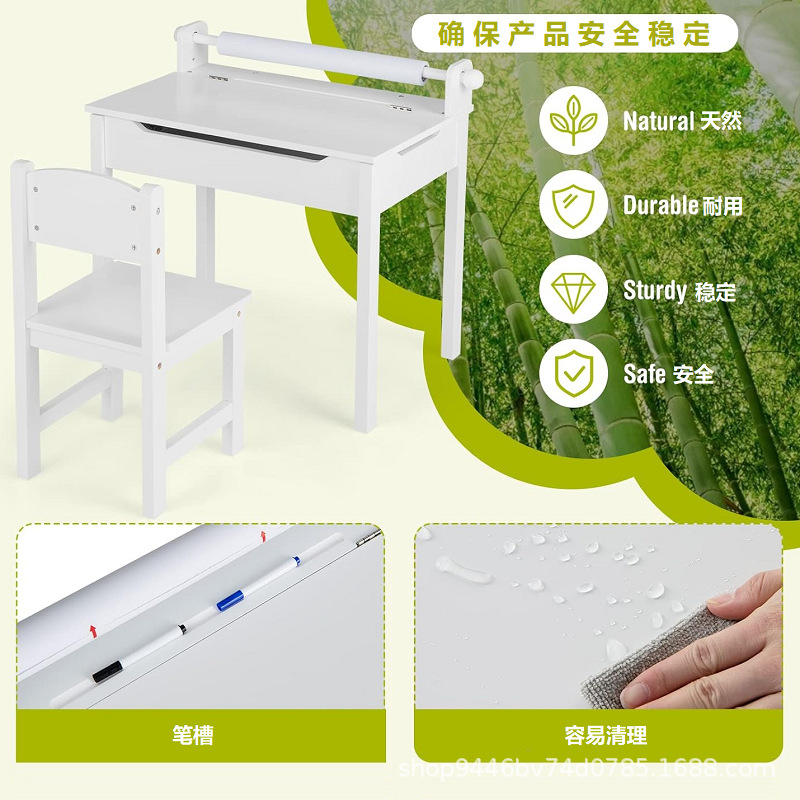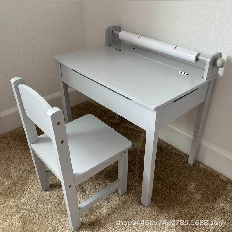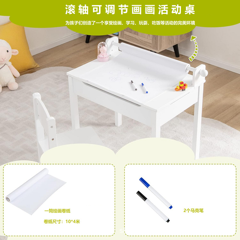子供用テーブルと椅子セット物置スペース付き木製昇降トップ紙ロール棚工芸美術活動テーブルセット