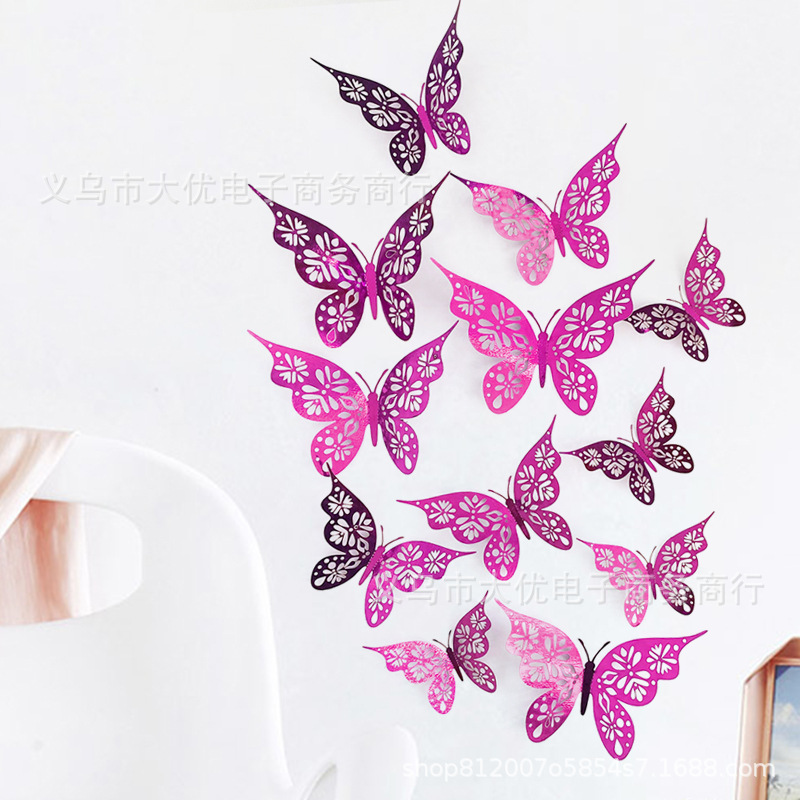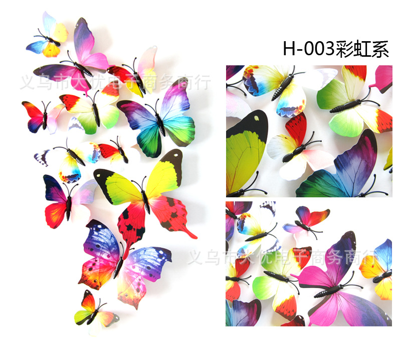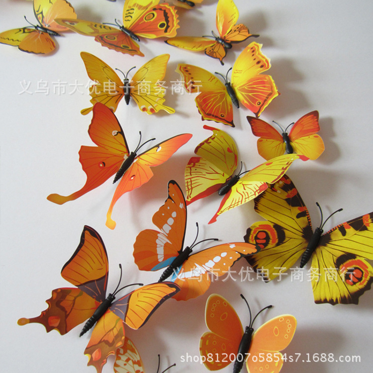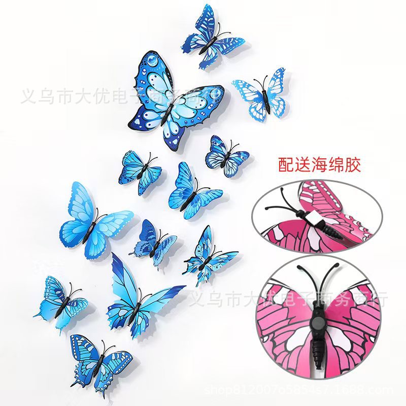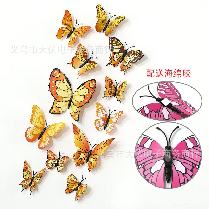 メーカー直販磁気鉄性粘着カラーシミュレーション蝶家装飾客間3d立体壁貼り12本セット