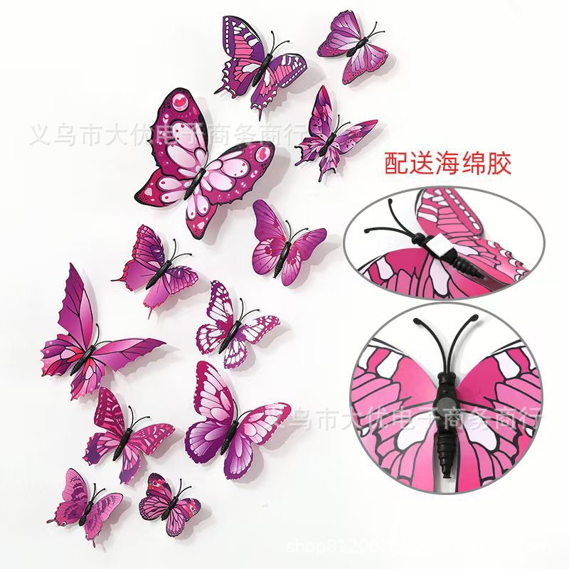 メーカー直販ピンカラー蝶立体壁貼り12本セット模擬蝶装飾品