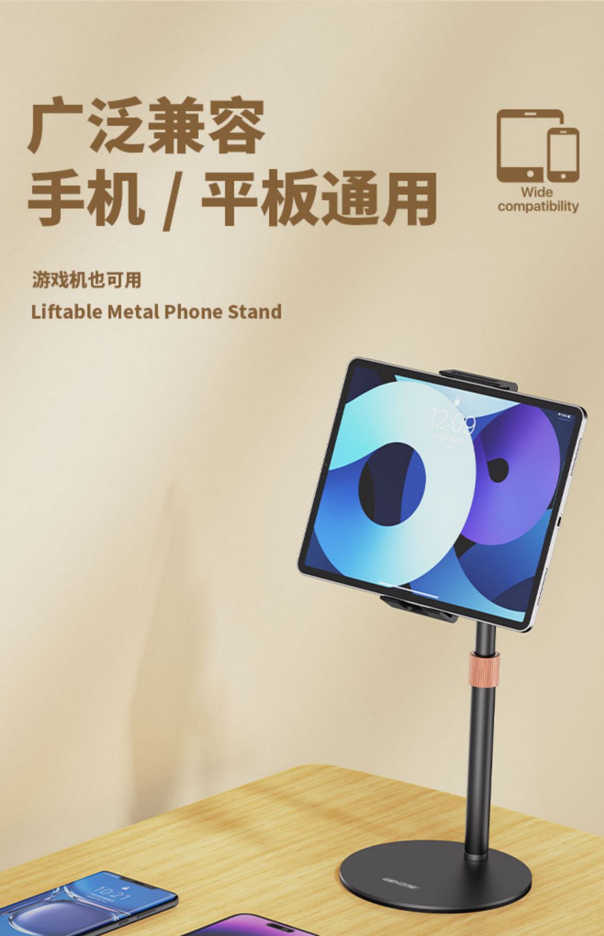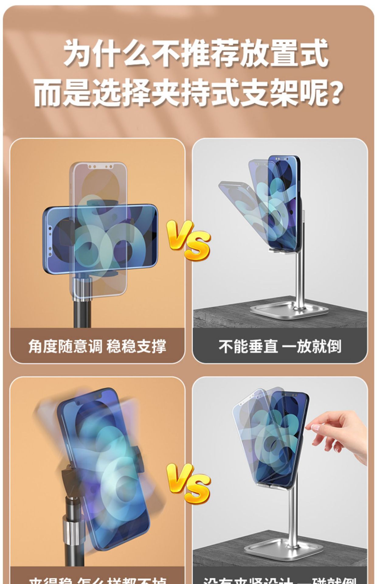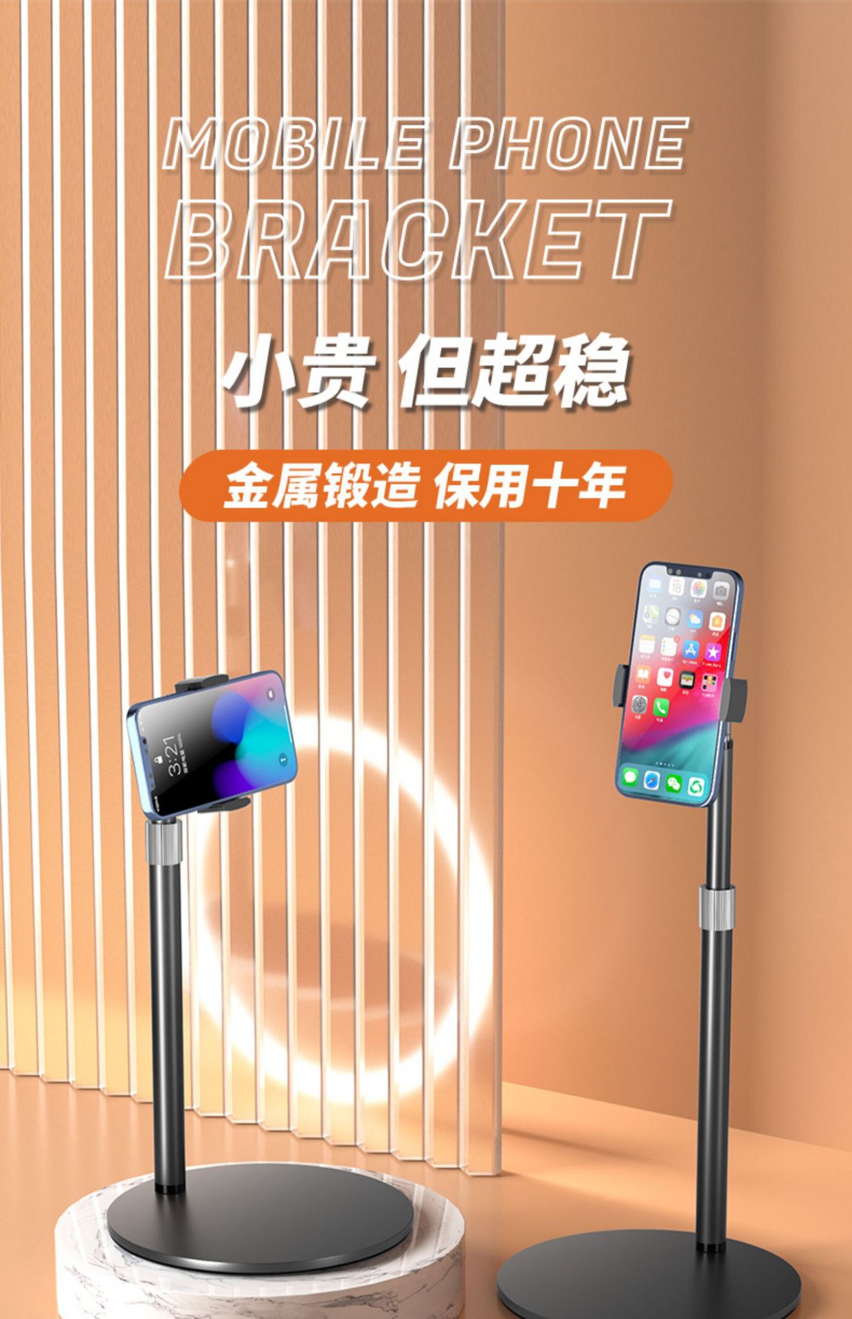 手机桌面支架伸缩全金属支撑架平板拍摄手机架懒人录视频直播拍照