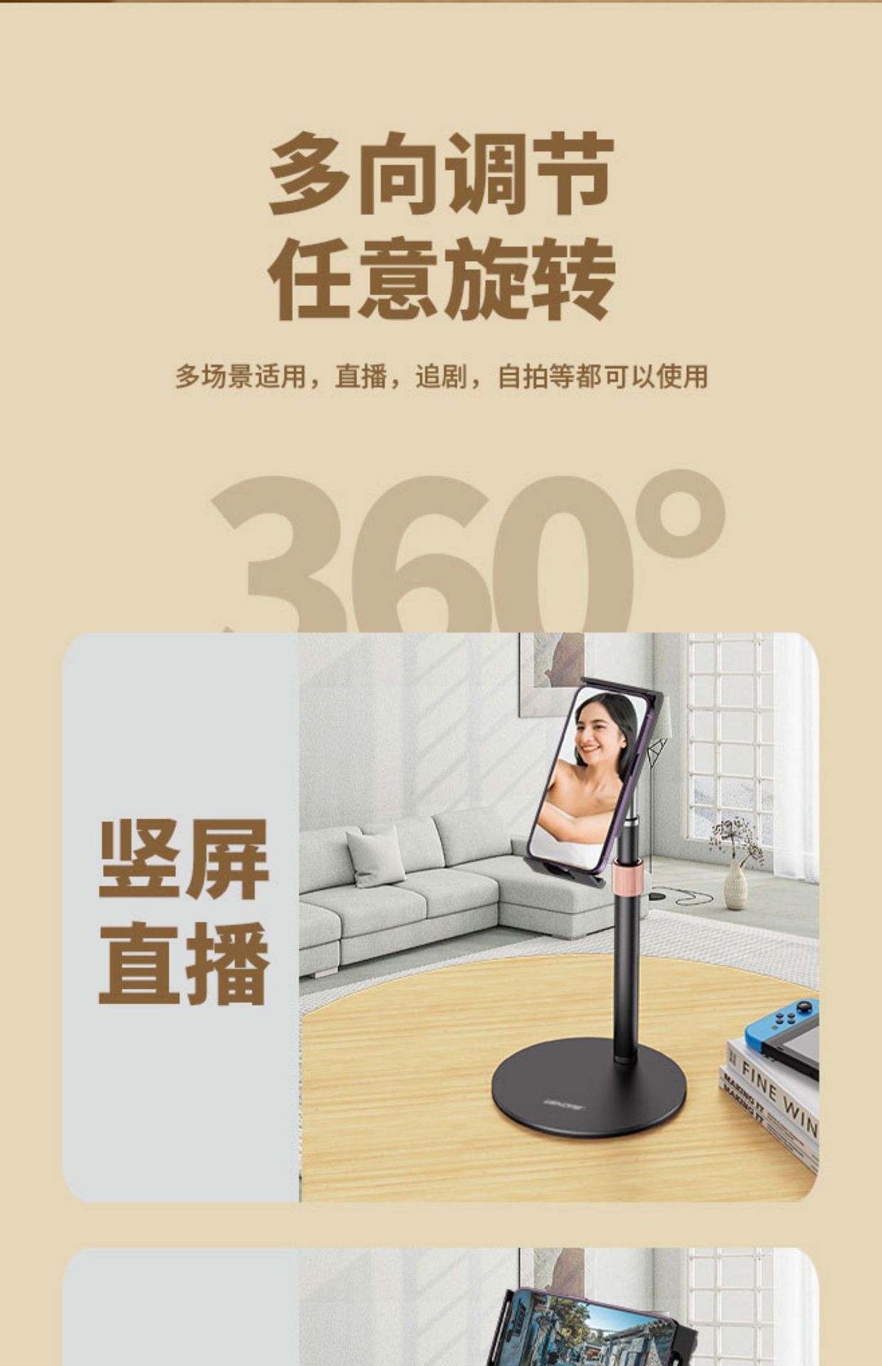 多功能可旋转伸缩手机平板通用桌面直播追剧学习升降调节支架稳固