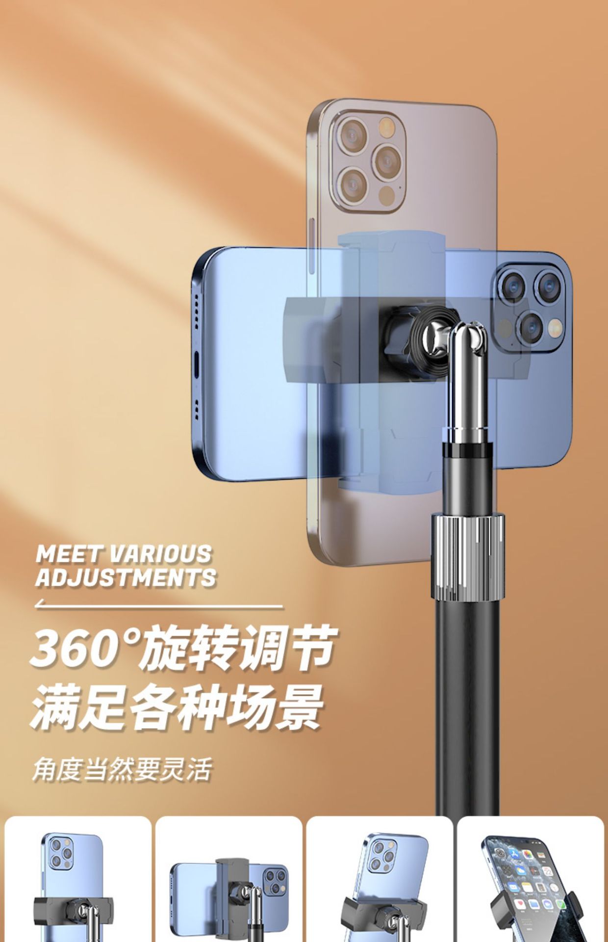 携帯電話の生放送撮影のデスクトップのスタンドを撮影して回転します。