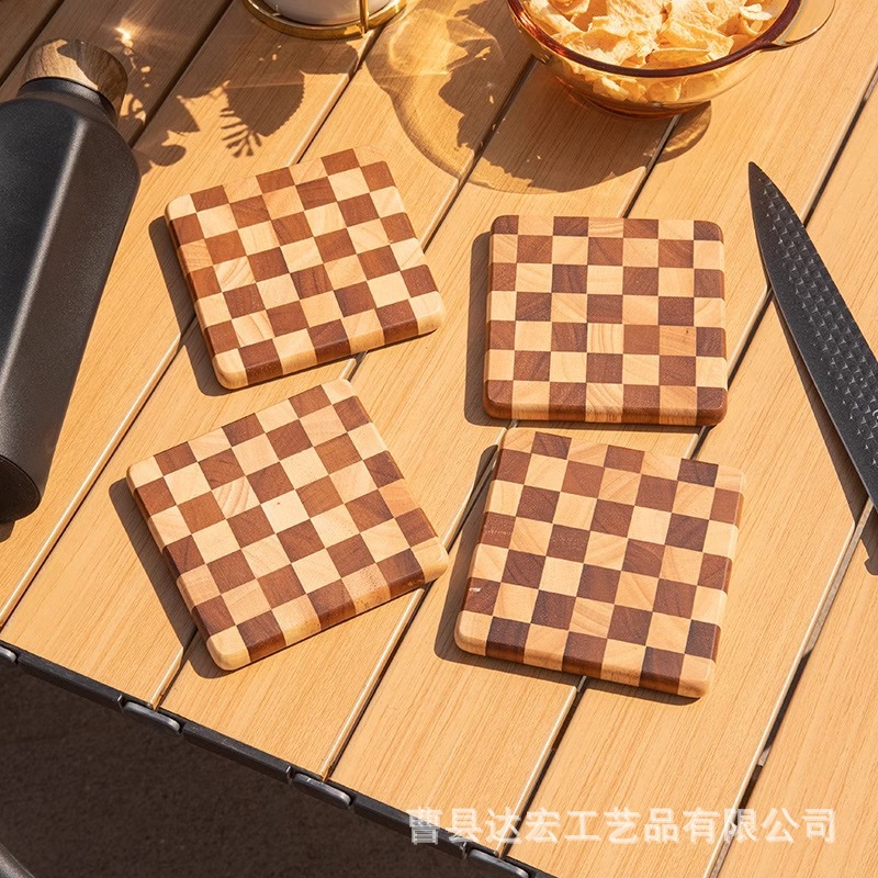 レトロな市松模様の無垢材のティーコースター 4inch ケーキトレイ ティーカップホルダー クリエイティブティーセット ソースメーカー