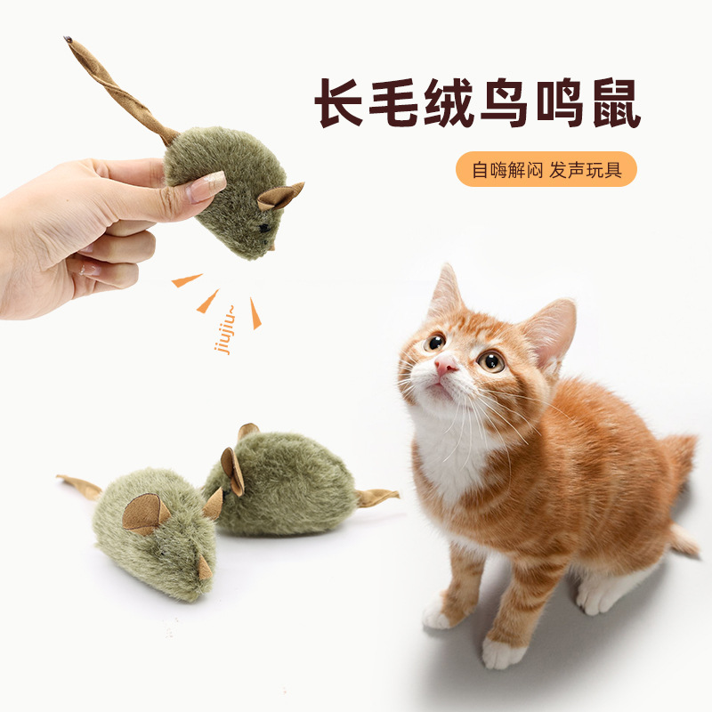 猫咪毛绒仿真小老鼠电子发声吱吱叫玩具自嗨解闷互动逗猫抓老鼠