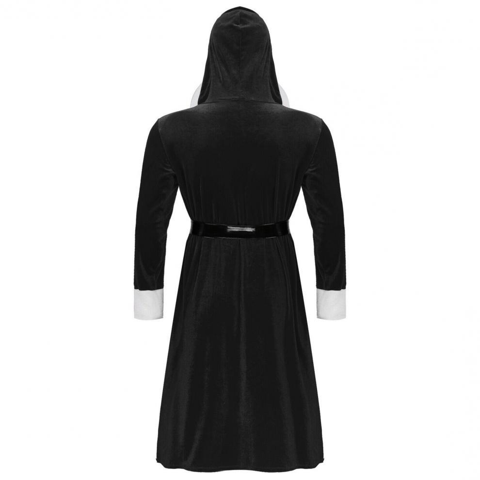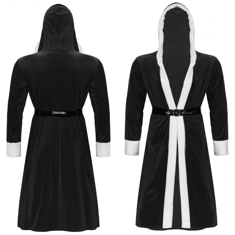 中世の黒いベルベットの短いマントのハロウィーンの服装の男女の同型の帽子のマントの舞台の演出服は国境を越えます。
