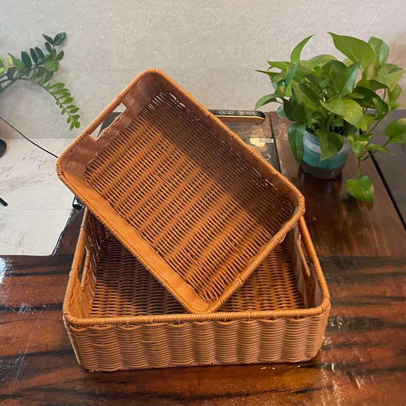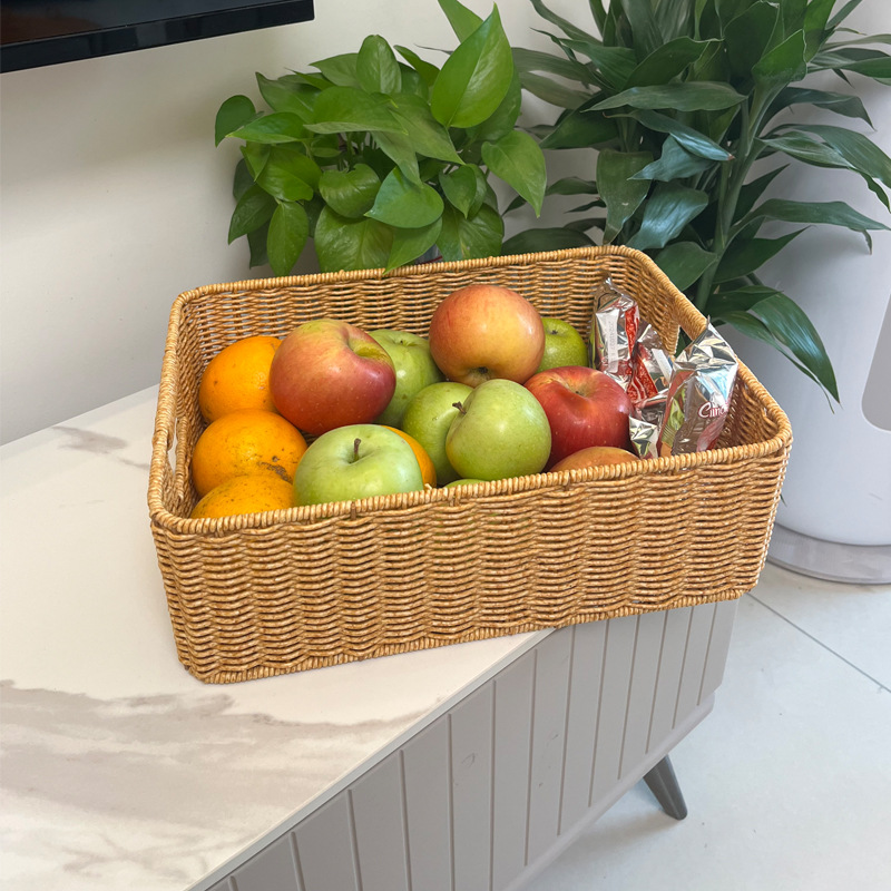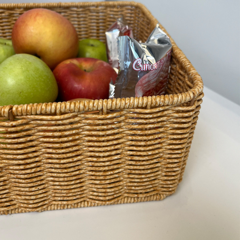 籐編みパンフルーツスナックスーパー陳列展示バスケットデスクトップ置物整理収納枠スクエア編みバスケット