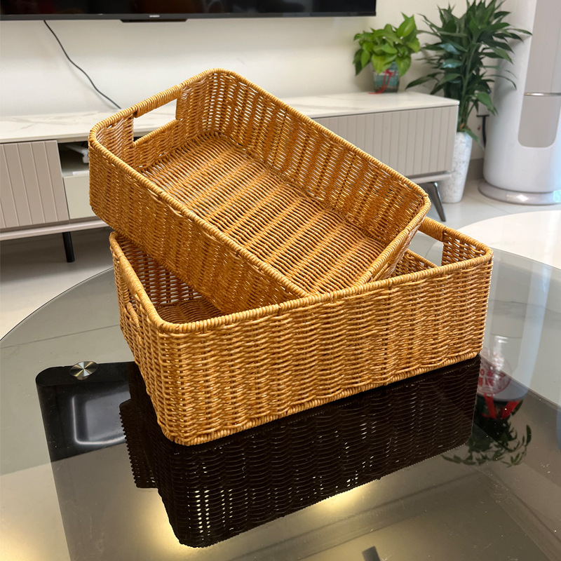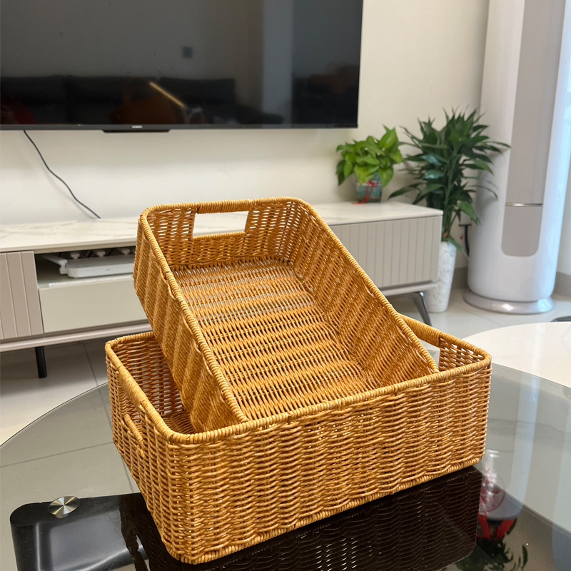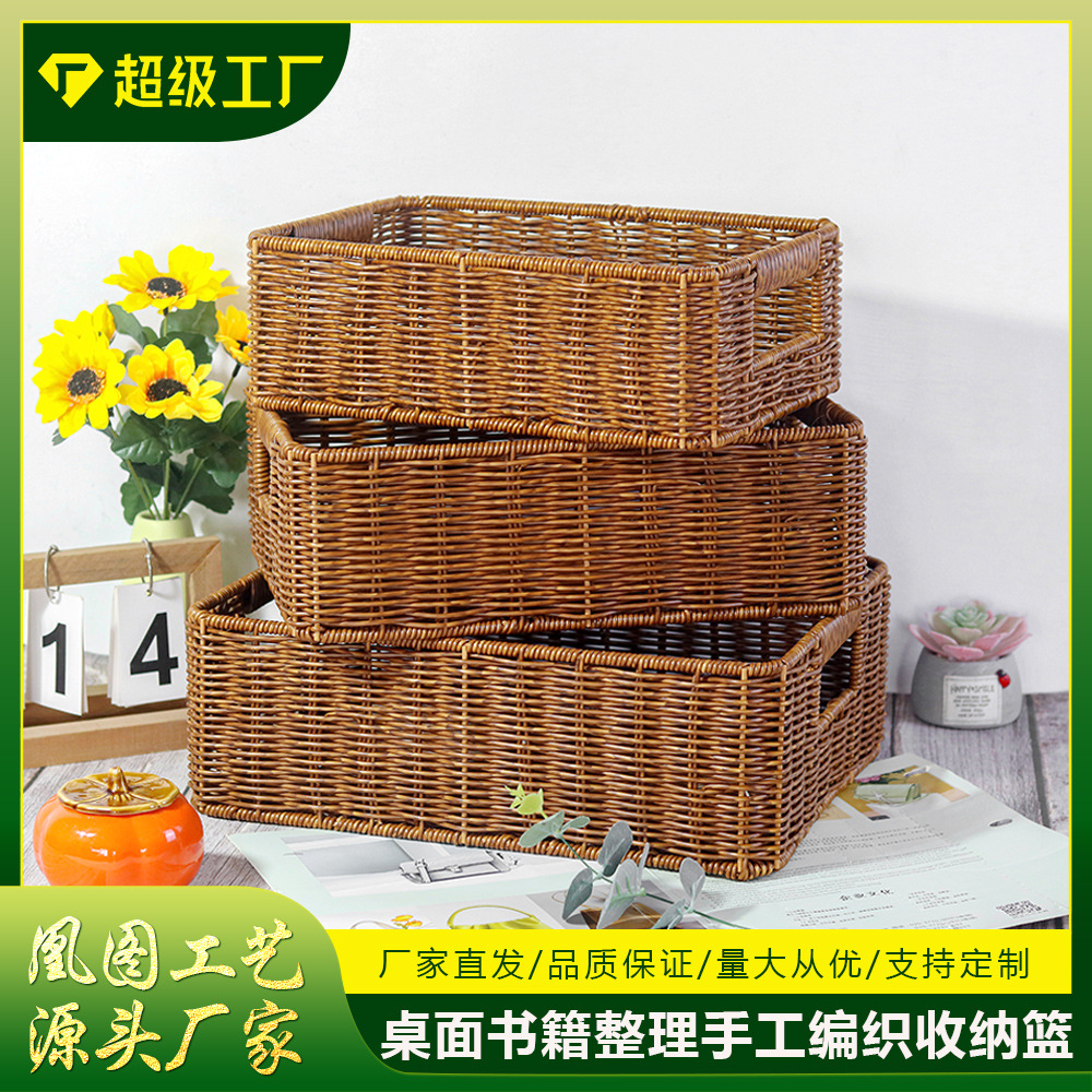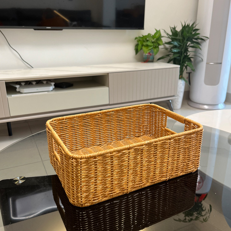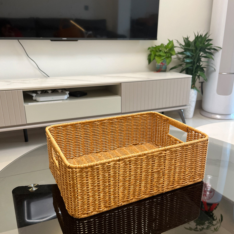 籐の収納ボックスを模したバスケットのデスクトップ収納バスケットのリビングルームのテレビキャビネットの引き出し整理バスケットのデスクトップのスナック収納収納収納バスケット